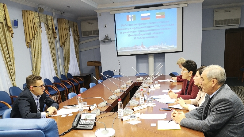 В Министерстве промышленности и торговли Республики Татарстан прошла рабочая встреча с заместителем министра промышленности, торговли и развития предпринимательства Новосибирской области Максимом Останиным. Главной целью встречи стал обмен опытом с регионом по вопросам оказания государственной поддержки на приобретение автолавок для обслуживания населения в отдаленных населенных пунктах и вопросы регулирования торговли алкогольной продукции на первых этажах многоквартирных жилых домов в ночное время. На встрече приняли участие заместитель министра сельского хозяйства и продовольствия Республики Татарстан Ришат Хабипов, заместитель руководителя Госалкогольинспекции по Республике Татарстан Рустем Арсланов, начальник отдела развития продовольственного рынка Министерства промышленности и торговли Республики Татарстан Резеда Миннеханова. От правления Татпотребсоюза на встрече присутствовали заместитель председателя правления по торговле Ирина Вафина и главный специалист Раиля Хасанова.