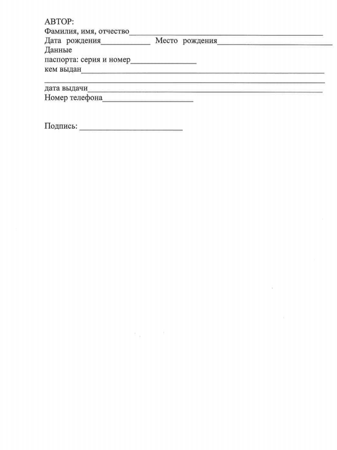 8. К работе необходимо заполнить и приложить анкету-соглашение на участие в двух экземплярах. Работы без анкеты-заявки не принимаются.