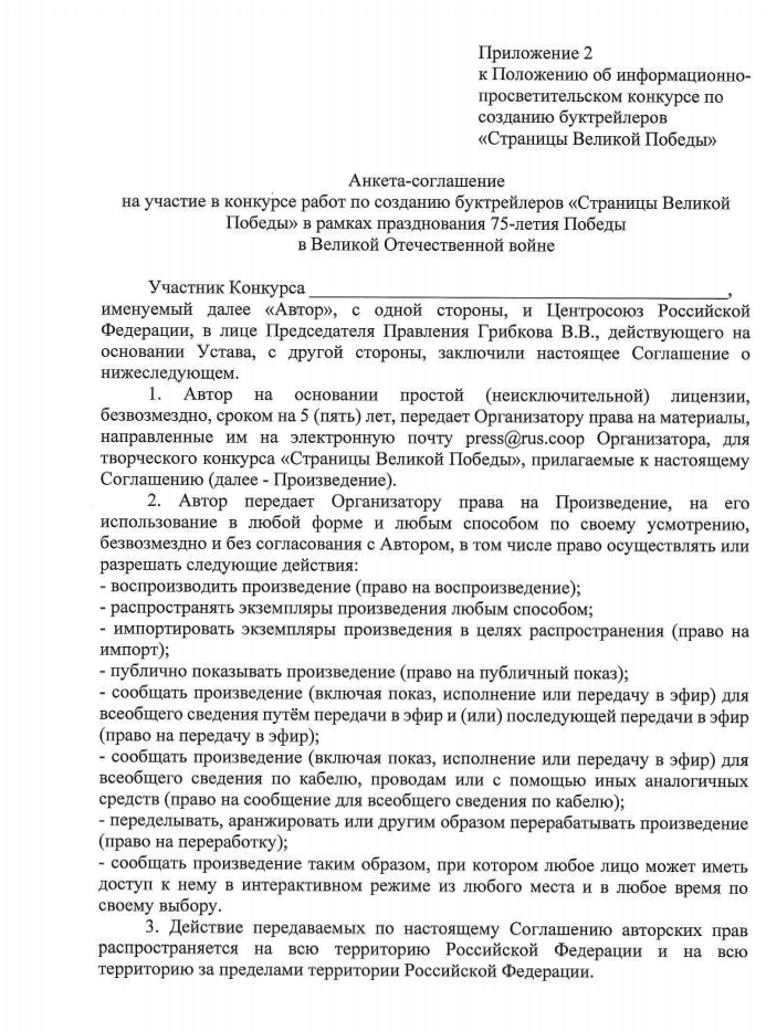 - участие в конкурсе означает согласие автора (авторов) на размещение буктрейлера на сайте Центросоюза России;