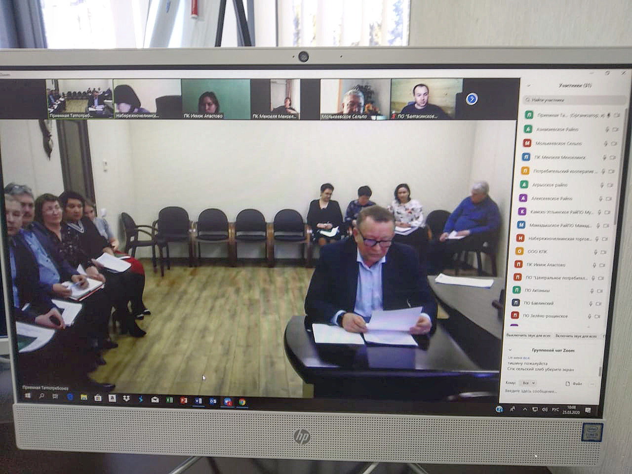 В связи с необходимостью обмена информацией о текущей ситуации и первоочередных задачах организаций потребительской кооперации в сложившихся условиях, связанных с распространением коронавирусной инфекции, оперативным штабом правления Татпотребсоюза принято решение о еженедельном проведении совещания в режиме видеоконференцсвязи (ВКС) для обеспечения нормальной деятельности потребительских обществ и кооперативов. Спикером сегодняшнего совещания выступил председатель правления Рашат Шаймарданов.