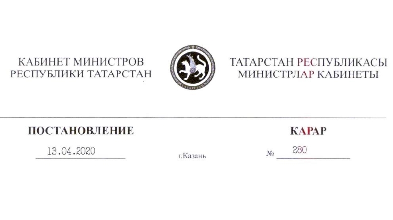 Постановление Кабинета Министров Республики Татарстан от 13 апреля 2020 г. N 280 "О внесении изменений в постановление Кабинета Министров Республики Татарстан от 19.03.2020 N 208 "О мерах по предотвращению распространения в Республике Татарстан новой коронавирусной инфекции"