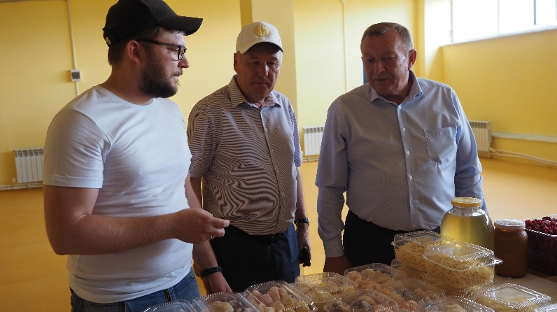 Ознакомление с деятельностью кооператива началось с посещения пекарни, расположенной в селе Лашманка, где была развернута выставка выпускаемой ими продукции. Представленный ассортимент широкий: это и мясная, колбасная продукция, различные полуфабрикаты, кондитерские и хлебобулочные изделия, лимонад на разный вкус. Также у кооператива имеются свои поля, где выращиваются зелень (салат, петрушка, зеленый лук), малина и клубника, а в этом году произведена посадка и лука-севка. Как сообщил председатель кооператива Альберт Латыпов, на сегодняшний день за год работы удалось нарастить объемы производства до 1,5 тн в сутки, а в планах - увеличить производимую продукцию до конца года вдвое.