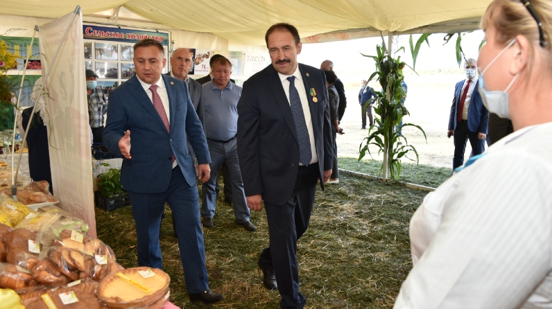 По прибытии в район он осмотрел выставку сельхозтоваропроизводителей, пообщался с руководителями предприятий агропромышленного комплекса, с представителями актива и главами сельских поселений. Речь шла об уборке зерновых на полях района, при этом Алексей Песошин поинтересовался, с какими сложностями приходится сталкиваться аграриям в период уборочной кампании. Отвечая на вопросы Премьер-министра Республики Татарстан, глава Апастовского муниципального района Равиль Хисамутдинов сообщил, что в течение 10-14 дней при благоприятной погоде в районе завершится уборочная.