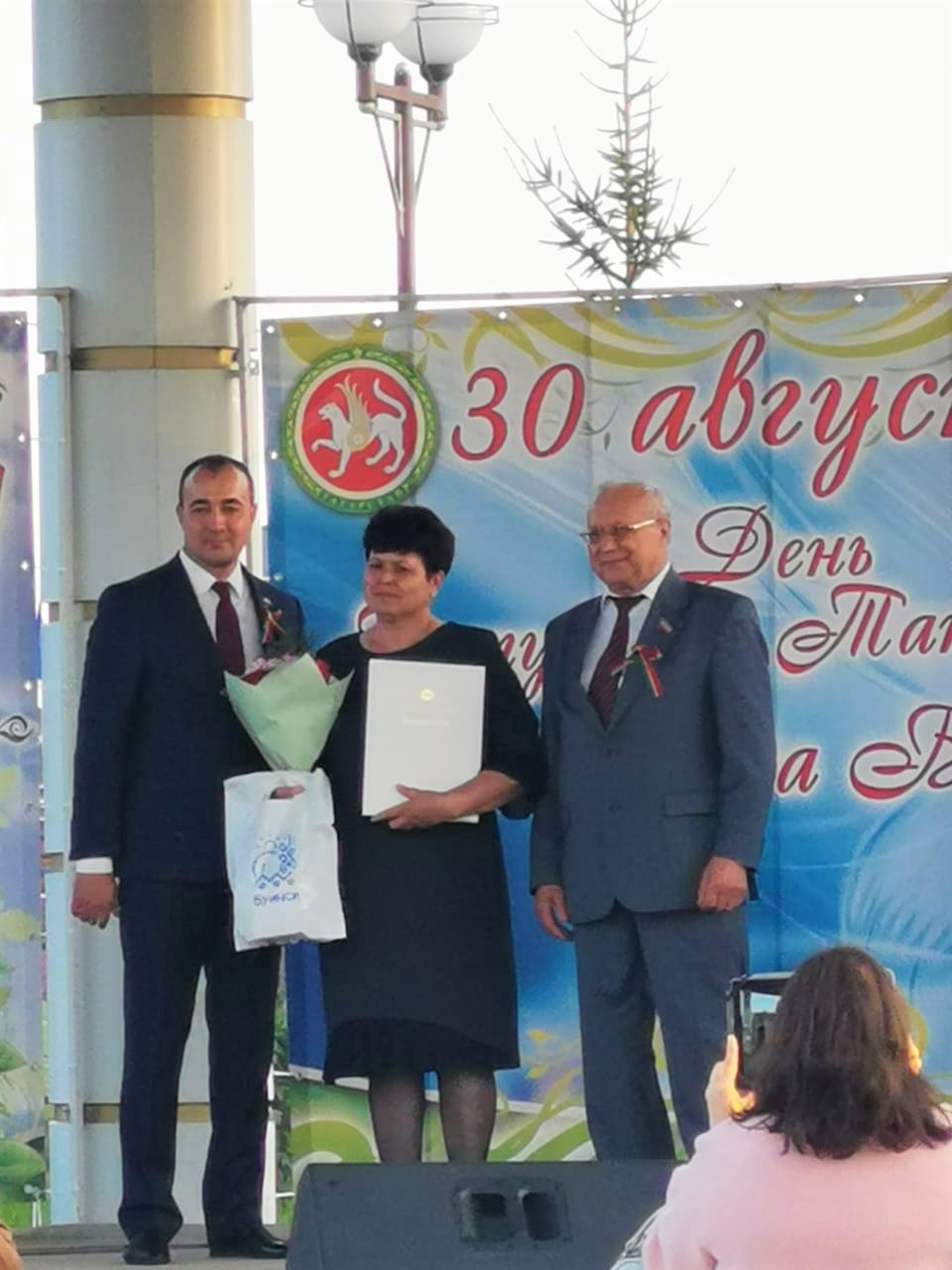 30 августа в торжественной части празднования Дня города Буинска за заслуги в развитии пищевой промышленности республики и за многолетний добросовестный труд в системе потребительской кооперации Залялова Фируза Бариевна - повар 5-го разряда кафе «Меридиан» Буинского районного потребительского общества отмечена Благодарностью Президента Республики Татарстан Р.Н.Минниханова