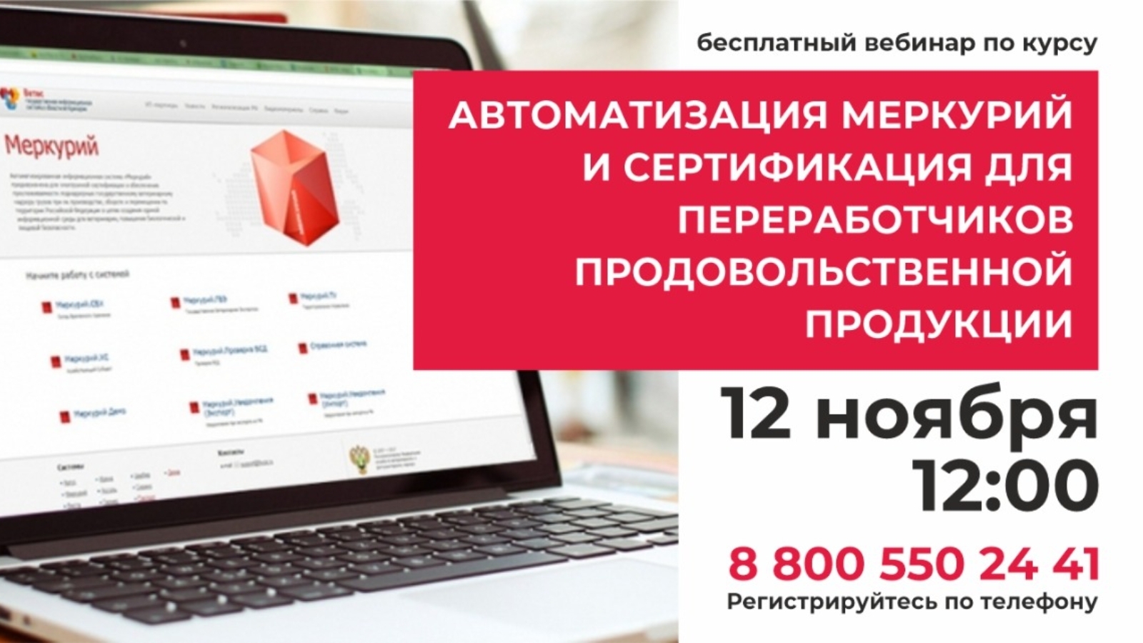 Минсельхозпрод РТ информирует, что 12 ноября в 12:00 на единой образовательной платформе «Агрополия» состоится очередной бесплатный вебинар, который будет посвящён автоматизации системы «Меркурий» и сертификации для переработчиков.