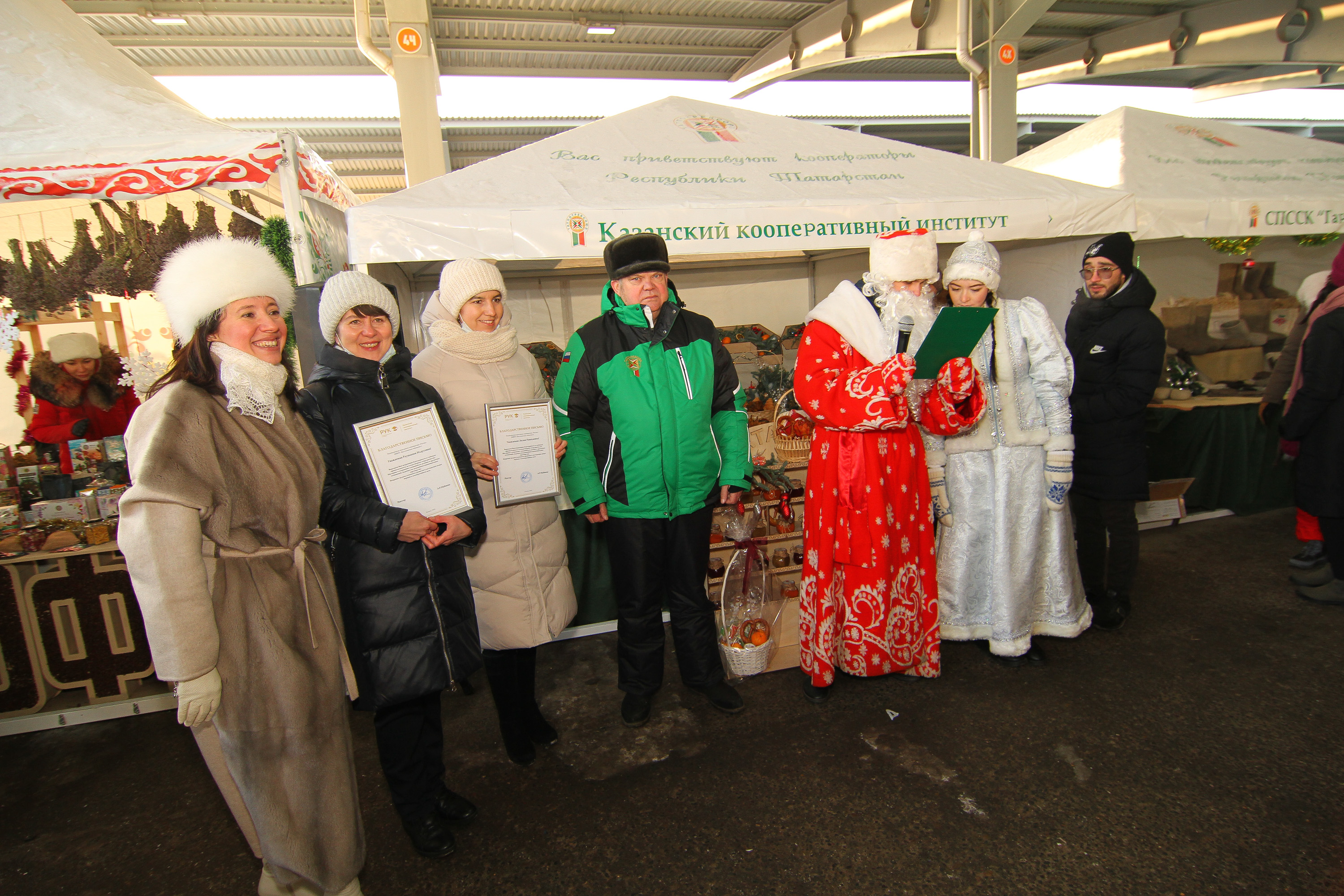 Кооператоры радужно встречали горожан и гостей республики, настроение у всех было истинно новогоднее, заряд прибавило и участие студентов ККИ РУК, которые не только подняли настроение, но и оказали помощь покупателям по доставке продукции до предполагаемых средств передвижения.