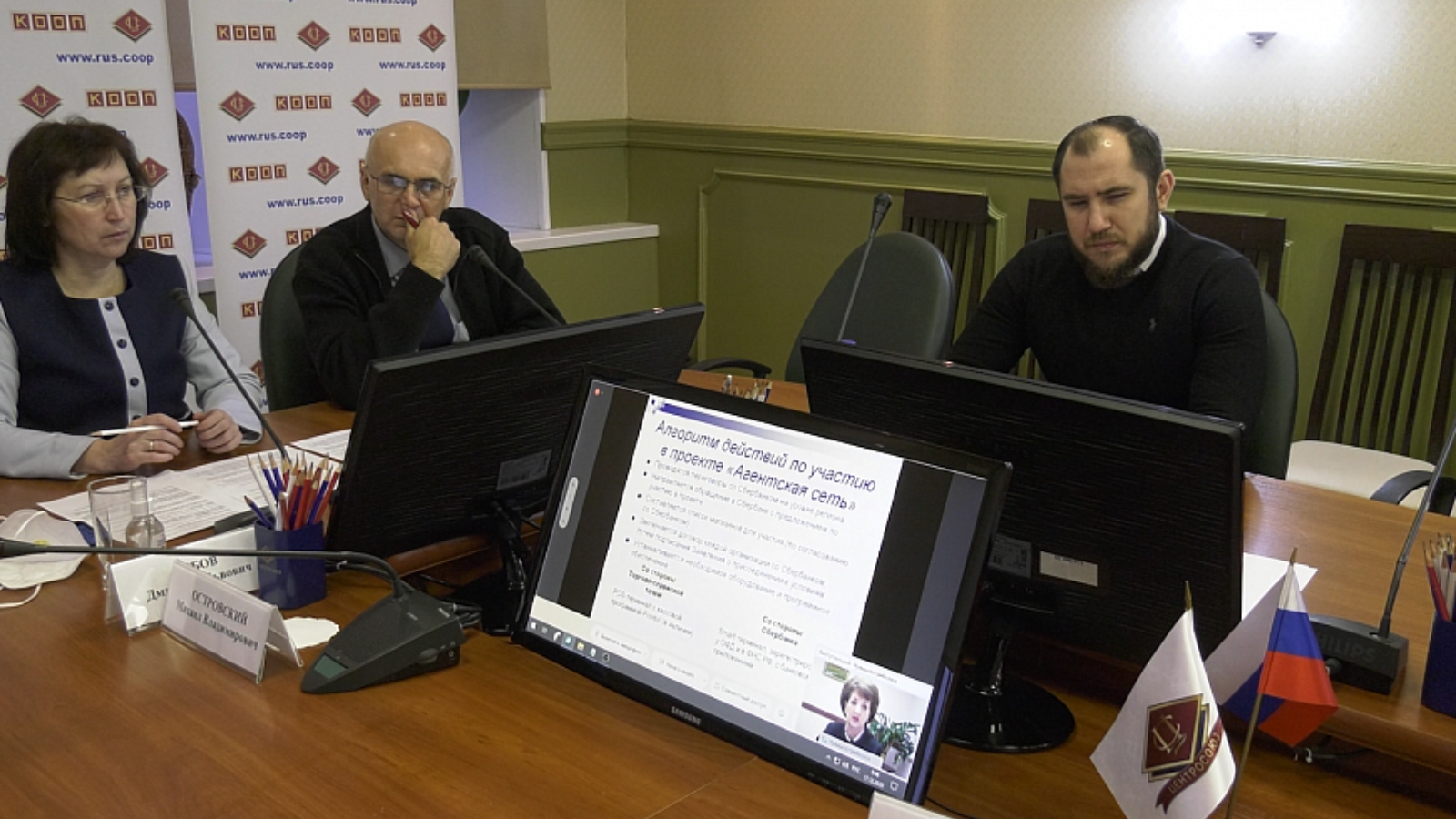 Исполнительный директор Центра проектов Центросоюза Дмитрий Шабалдин довел до участников совещания информацию о перспективных направлениях развития проекта «Агентская сеть» в системе потребительской кооперации. Руководитель проектов Центра проектов Центросоюза Алексей Бобылев рассказал о реализации проекта «Кооператив онлайн» в 2021 году.