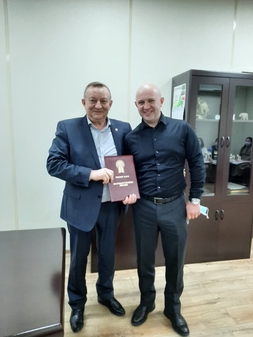 На еженедельном аппаратном совещании правления вручено Благодарственное письмо руководителю компании ООО «Азон» Юнусову Рустему Фаритовичу. Данная компания в середине этого года взяла на себя обязанности по строительству 21 пункта комплексного обслуживания населения (ПКОН) в 19 муниципальных образованиях. Вручая награду, Рашат Рифкатович выразил слова благодарности Рустему Фаритовичу и его команде за четкую и слаженную работу, и отметил, что качество блочно-модульных пунктов из года в год улучшается, во благо кооператоров Республики Татарстан.