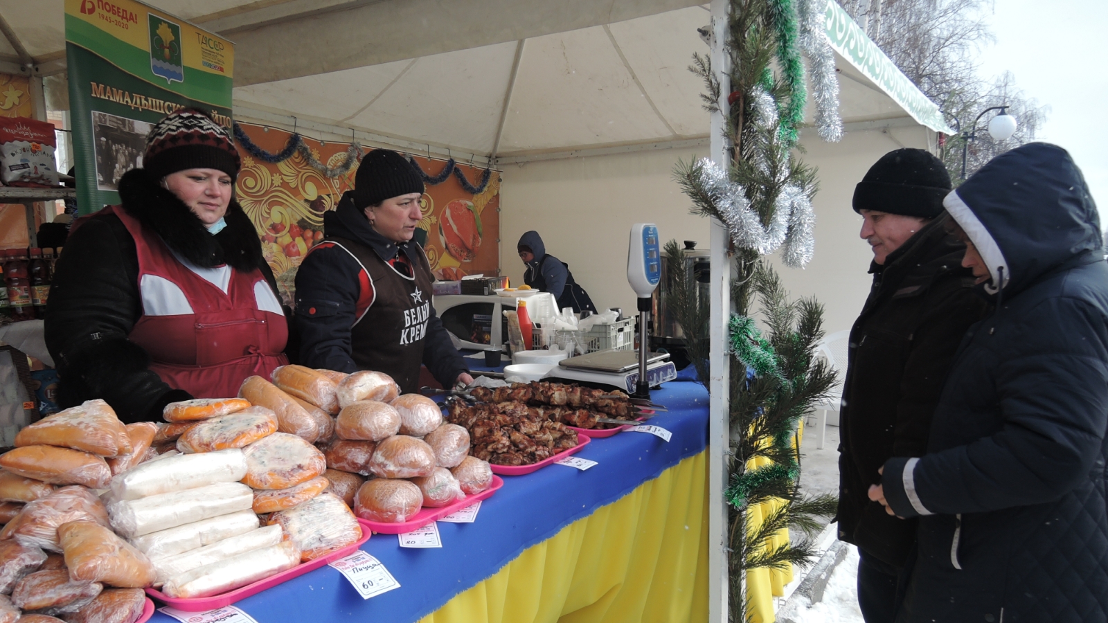 Поклонники крутых трасс готовят сани с лета и приезжают в разгар зимы на соревнования в Мамадыш – показать свою «санную» удаль. В минувшую субботу в городок на Вятке прибыли 54 команды, в общей сложности около шестисот участников. И какие только санки не привезли они с собой – неожиданных, необычных, подчас просто сумасшедших конструкций! С раннего утра улица превратилась в парад чудес, горячего чая, ароматных шашлыков и прочих вкусностей. Глаза разбегались от обилия товаров, которые предлагали сельхозтоваропроизводители республики: тут вам и самая свежая фермерская продукция, и мед на все вкусы, и расписные под гжель и хохлому матрешки и много чего еще. Из просторного павильона мамадышских кооператоров валил густой пар – в огромном казане варился плов, кипел самовар, манили ароматами шашлыки, притягивали взоры колеса колбас. Тут же, возле павильона, расставлены столы и стулья – откушать можно со всеми удобствами. Галина Бастрыгина, продавец выездной торговли Мамадышского райпо, едва успевала подогревать эчпочмаки и разливать покупателям чай, ей помогали молодые коллеги, тоже продавцы – Оксана и Гульчачак.