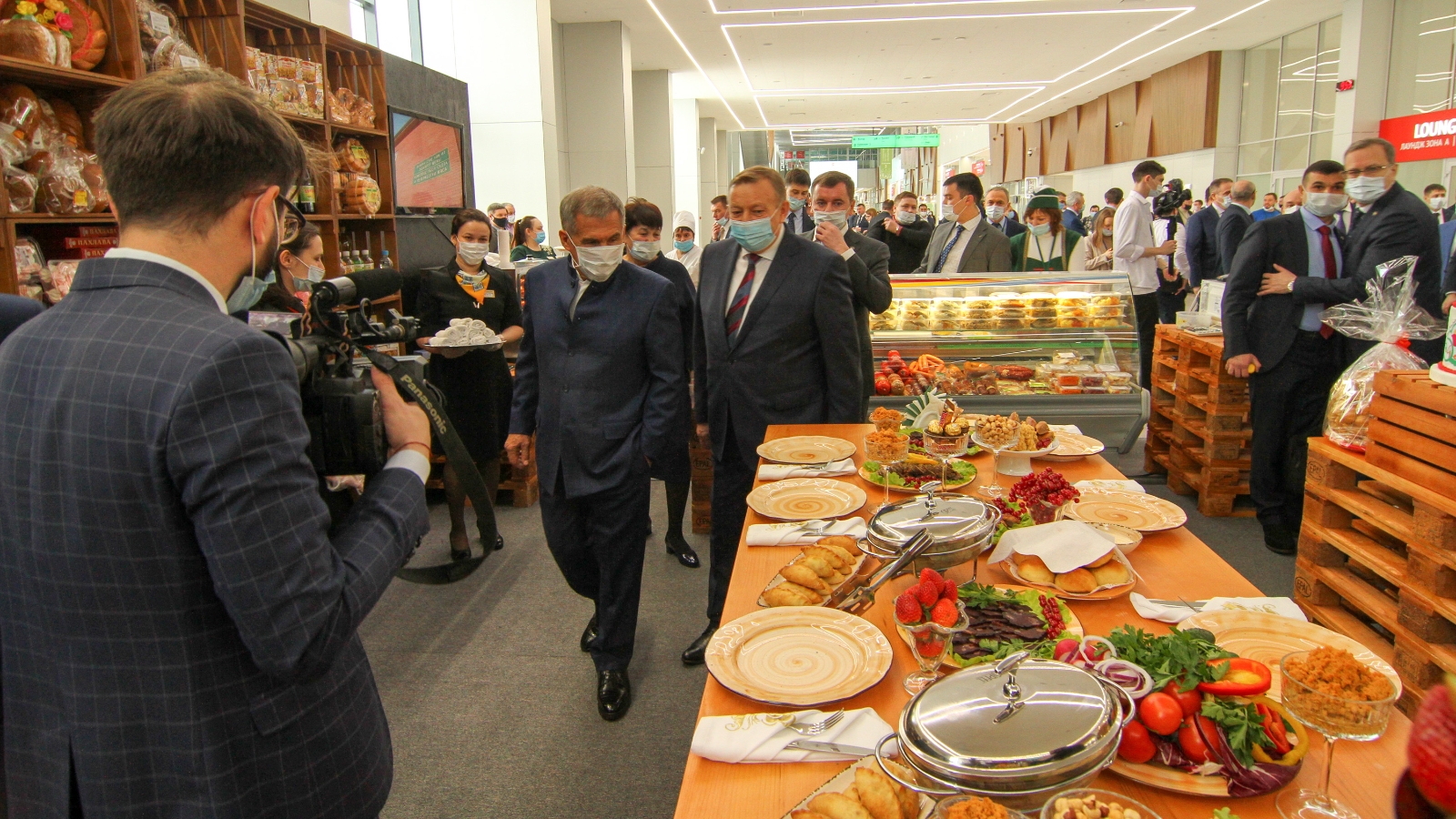 Выставку посетили и продегустировали изделия общепита Президент Республики Татарстан Рустам Минниханов, заместитель Премьер-министра РТ – министр сельского хозяйства и продовольствия РТ Марат Зяббаров и другие сопровождающие их лица. Встретил гостей и ознакомил их с экспозицией председатель правления Татпотребсоюза Рашат Шаймарданов.