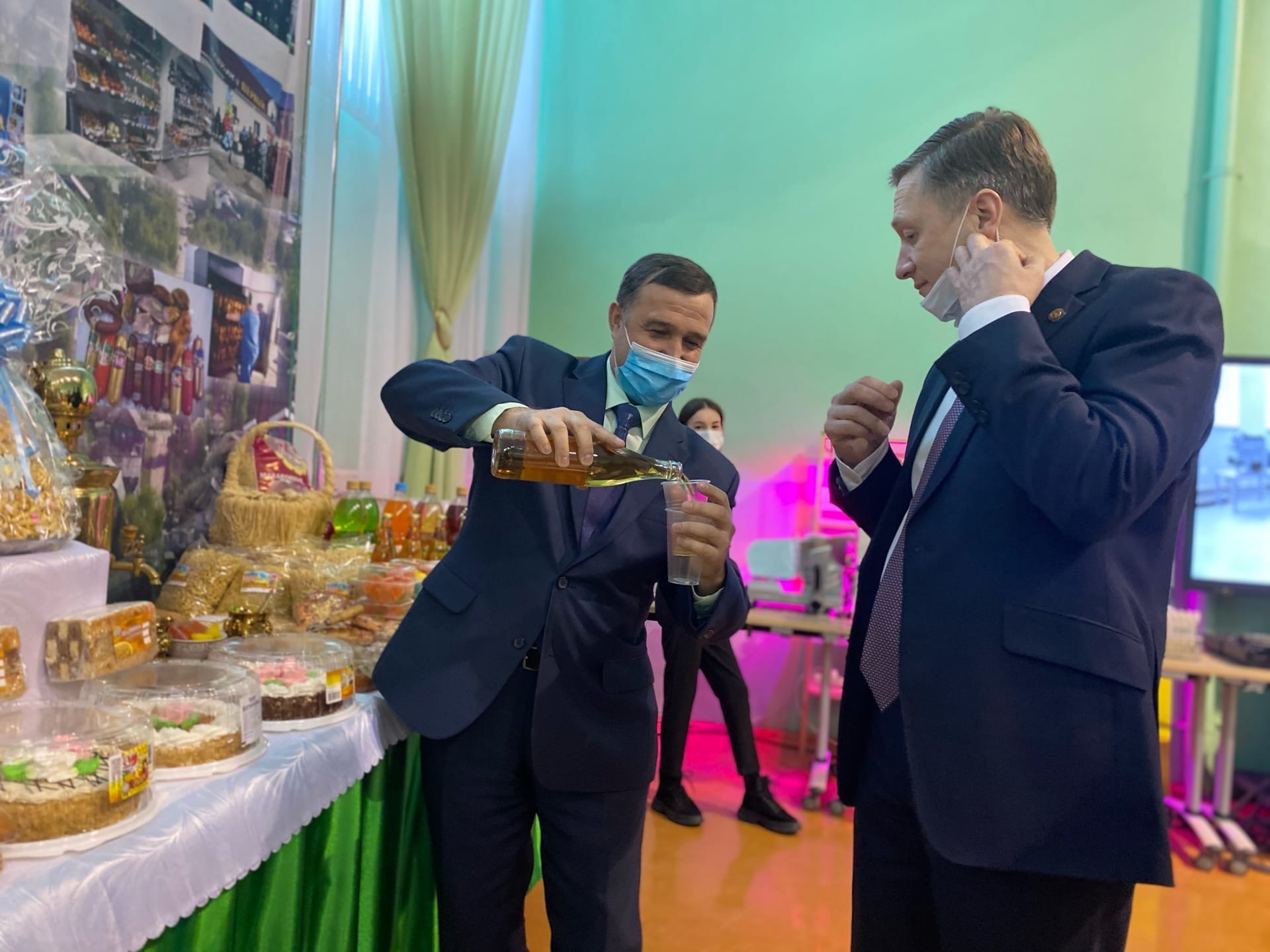 В Районном Доме культуры гости города посетили выставку товаропроизводителей Мамадышского района. Продукция славится своим качеством не только в Татарстане, но и по всей стране. Рыба, фрукты, овощи, мех, спирт, сувениры и многое другое производят местные умельцы. Альберта Каримова особенно привлек мамадышский лимонад, выпускаемый кооператорами Мамадышского райпо. «Вкус детства», - отметил он.