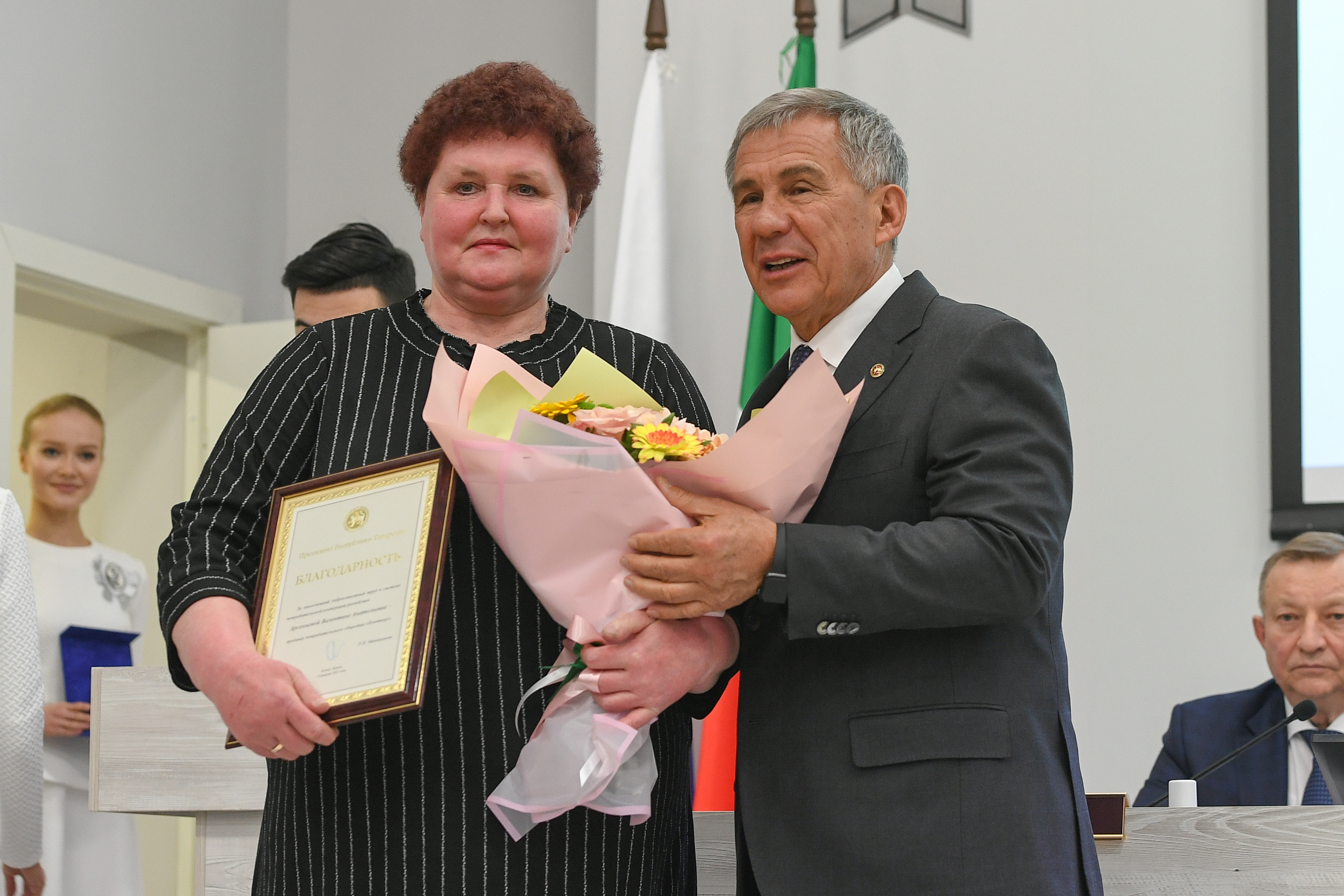 Распоряжением Президента Республики Татарстан за многолетний добросовестный труд в системе потребительской кооперации Республики Татарстан Благодарность Президента Республики Татарстан объявлена продавцу потребительского общества «Коопторг» Алексеевского района Арсеньевой Валентине Анатольевне.