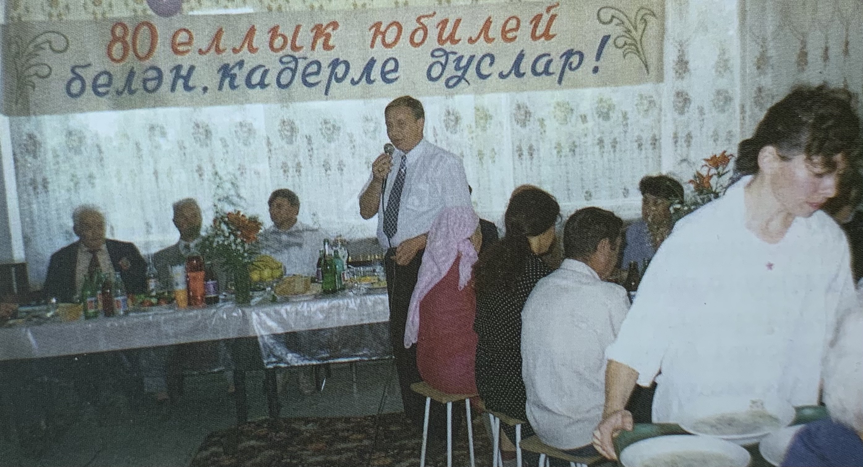 Празднование 80-летия Муслюмовского райпо. В президиуме бывшие председатели райпо, ветераны ВОВ, глава администрации Р.М.Шарипов