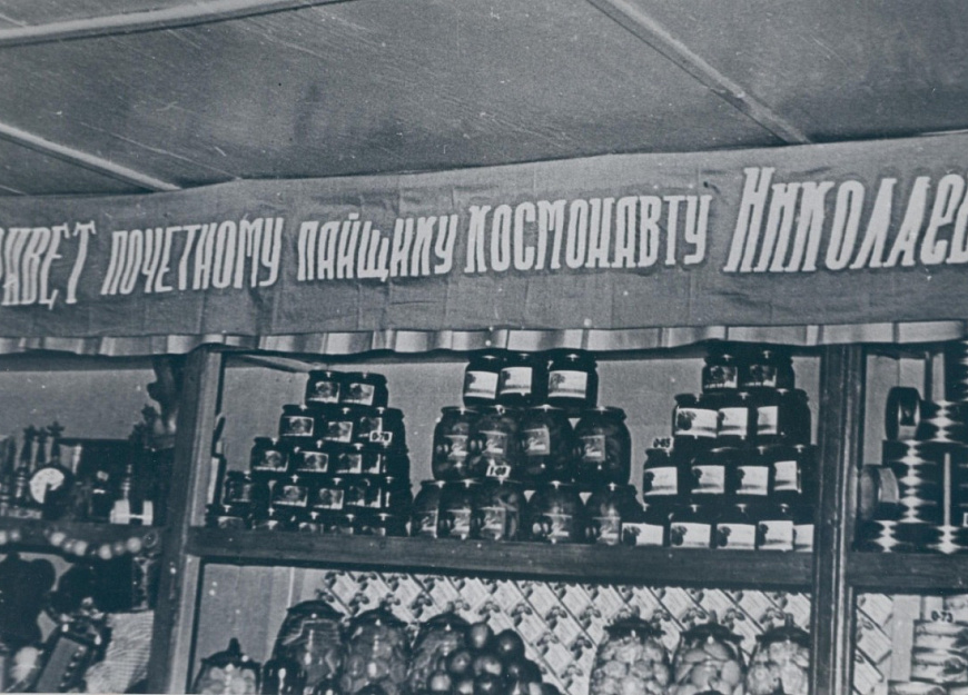 А днем ранее постановлением правления Чувашпотребсоюза и Чувашского обкома профсоюза работников госторговли Андриян Николаев был принят в почетные пайщики. Ему была выдана членская кооперативная книжка № 373823. Когда именитый гость заходил в магазины райпо, его встречали растяжками с надписью «Привет почетному пайщику космонавту Николаеву!»