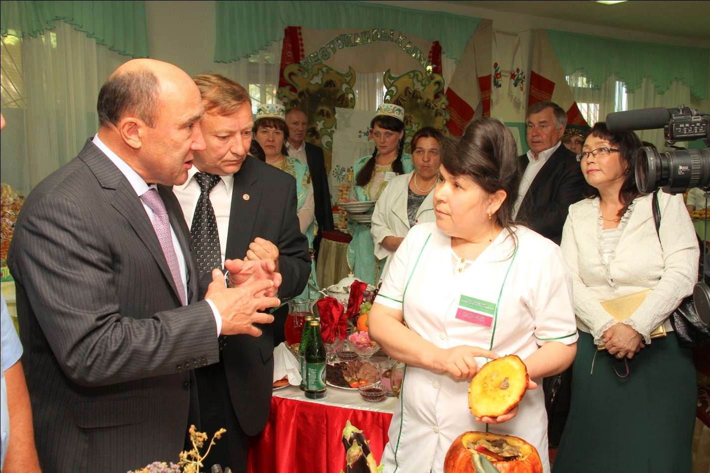 Директор общепита Ахметзянова С.И. объясняет вкусовые качества блюд, 2012г.