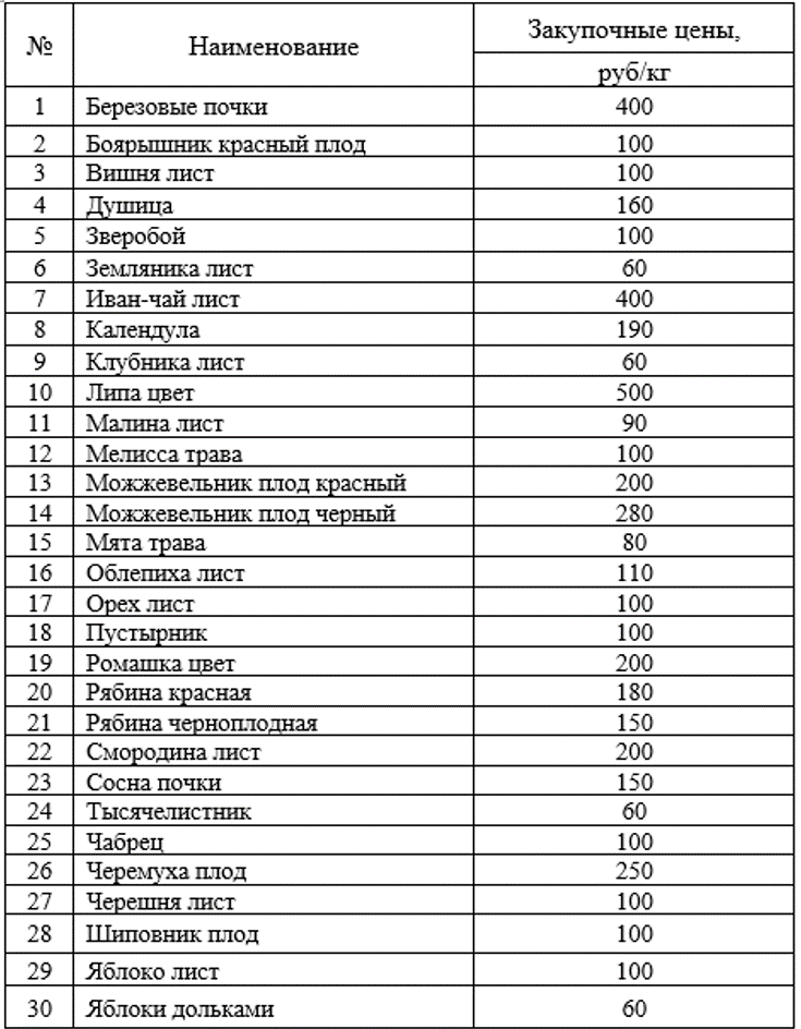 Сдать заготовленное лекарственно-техническое сырье в заготовительные конторы муниципальных районов республики можно по следующим ценам: