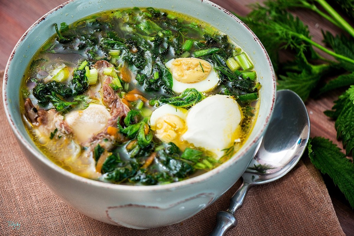 Яшь кычыткан яфракларын салкын су белән юып, 2-3 минутка кайнап торган суга салып алабыз һәм, иләккә салып, өстенә салкын су коябыз да суын саркытабыз. Суы саркып беткәч, иттарткычтан чыгарабыз. Тирән эчле табага 2 аш кашыгы үсемлек мае салып, кычытканны 10-15 минут томалап пешерәбез. Суганны чистартып, ваклап турыйбыз һәм кечкенә табада 2 аш кашыгы үсемлек мае белән пешереп алабыз, пешәр алдыннан ваклап туралган яшел суган салабыз. Кәстрүлдә кайнап торган шулпага кычыткан, суган салабыз һәм салмак утта 20 минут чамасы пешерәбез. Шул арада табада 1 аш кашыгы майда он кыздырабыз, аны пешәргә 10 минут кала ашка салабыз. Шулай ук туралган яшь кузгалак яфраклары, тоз һәм башка тәмләткечләр өстибез. Ашны тәлинкәләргә салып, өстенә ваклап туралган йомырка кушып, яшел үләннәр сибеп, табынга куябыз.