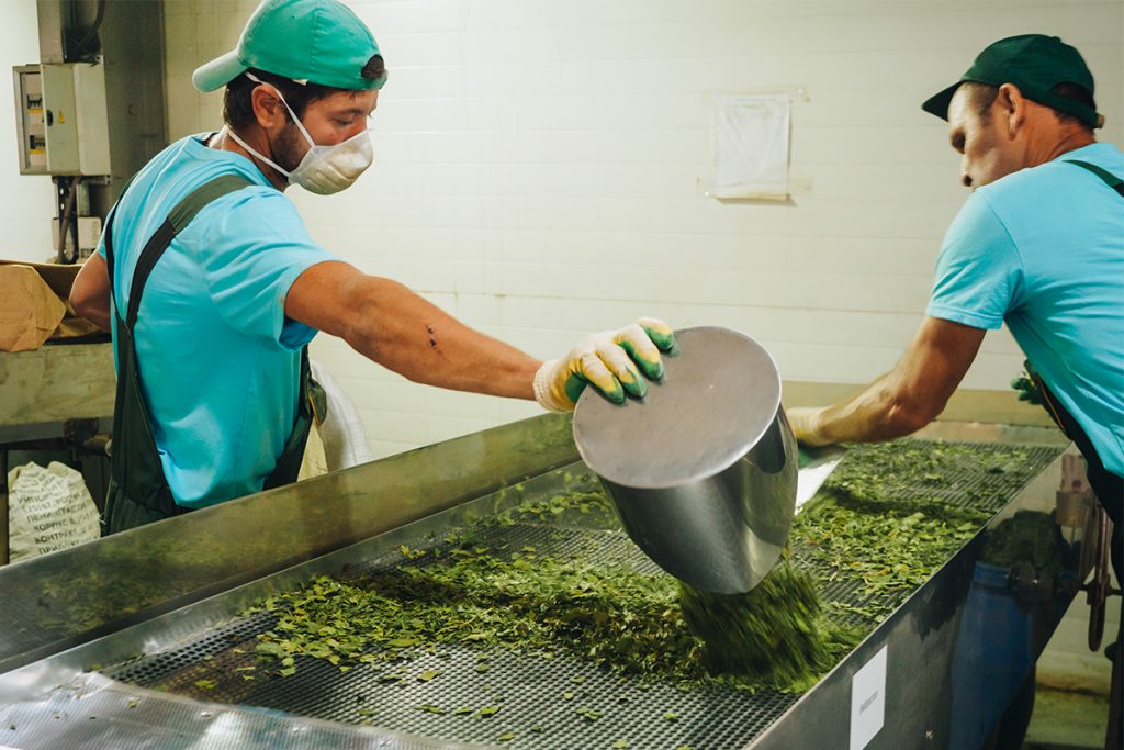 В первом цехе хранят десятки тонн сырья: индийские и китайские листовые чаи, которые закупают напрямую у зарубежных производителей, а также травы, которые собирают фермеры и заготовщики со всей России — от Алтая до Краснодара. Здесь же рабочие проводят первичную обработку: сырье очищают от примесей и пыли на вибростоле, измельчают, купажируют в специальном баке и передают на фасовку. «Фабрика» сразу отказалась от использования ароматизаторов и по сей день используют в сборах кусочки яблок, груши, малины и другие натуральные добавки. Это увеличивает себестоимость продукта, но делает его несравнимо качественнее аналогов крупных брендов.