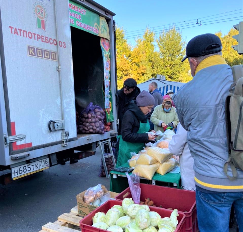 С шести утра с участием организаций потребительской кооперации ярмарочные площадки заработали на Ленинградской, 27, Татарстан, 53, Краснококшайской, 150/2, Батыршина, 20, Усманова, 1, Ямашева, 71а, Лаврентьева, 10, Зорге, 66, Аграрной, 2 и Липатова, 7.