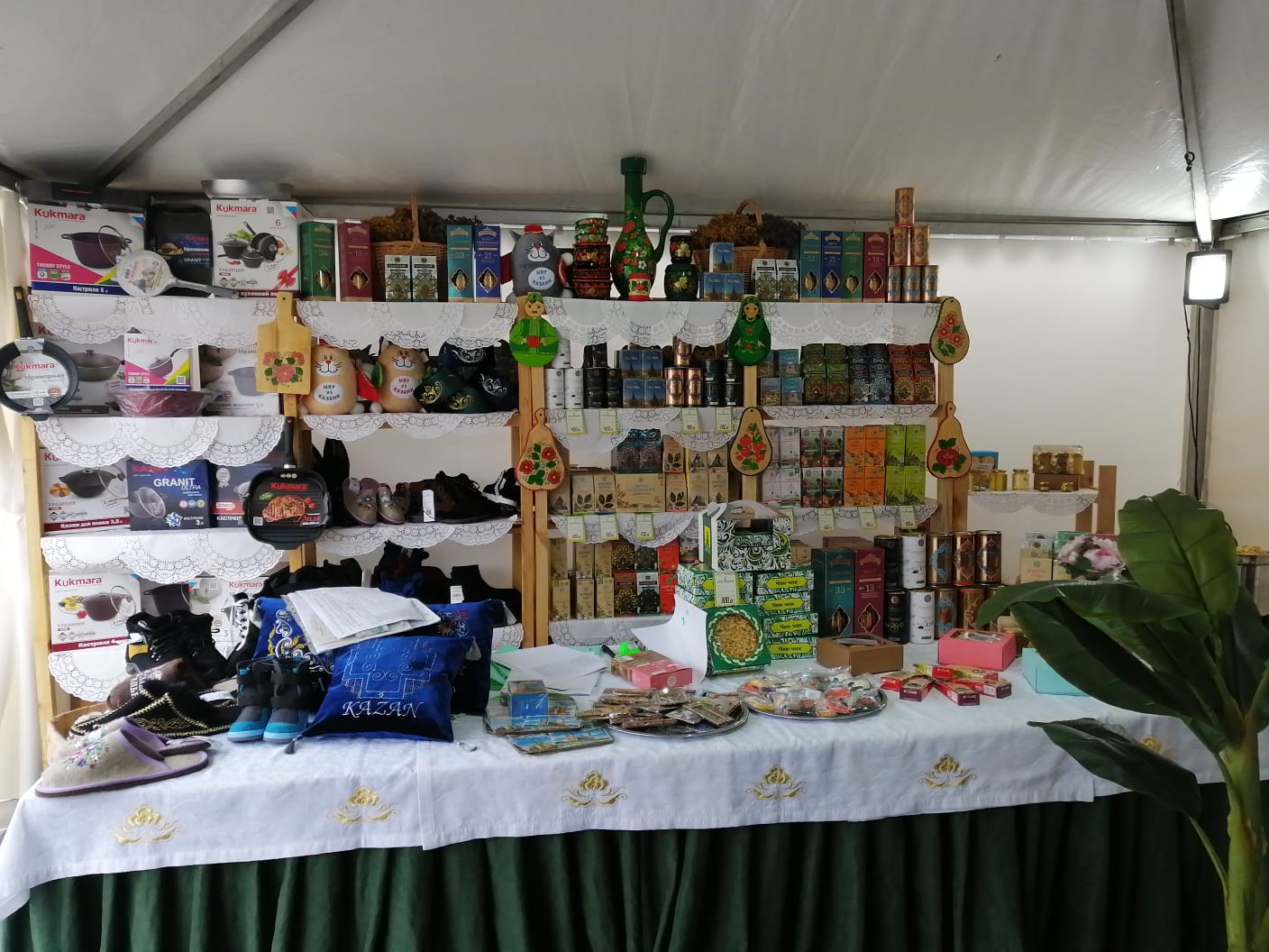 Кооператоры из Татарстана усердно готовят экспозицию, и это на самом деле так: чего только не выставили они на своих полках. Это и всевозможная выпечка, колбасы, татарские национальные угощения, изделия кукморских производителей. Есть, что приобрести.