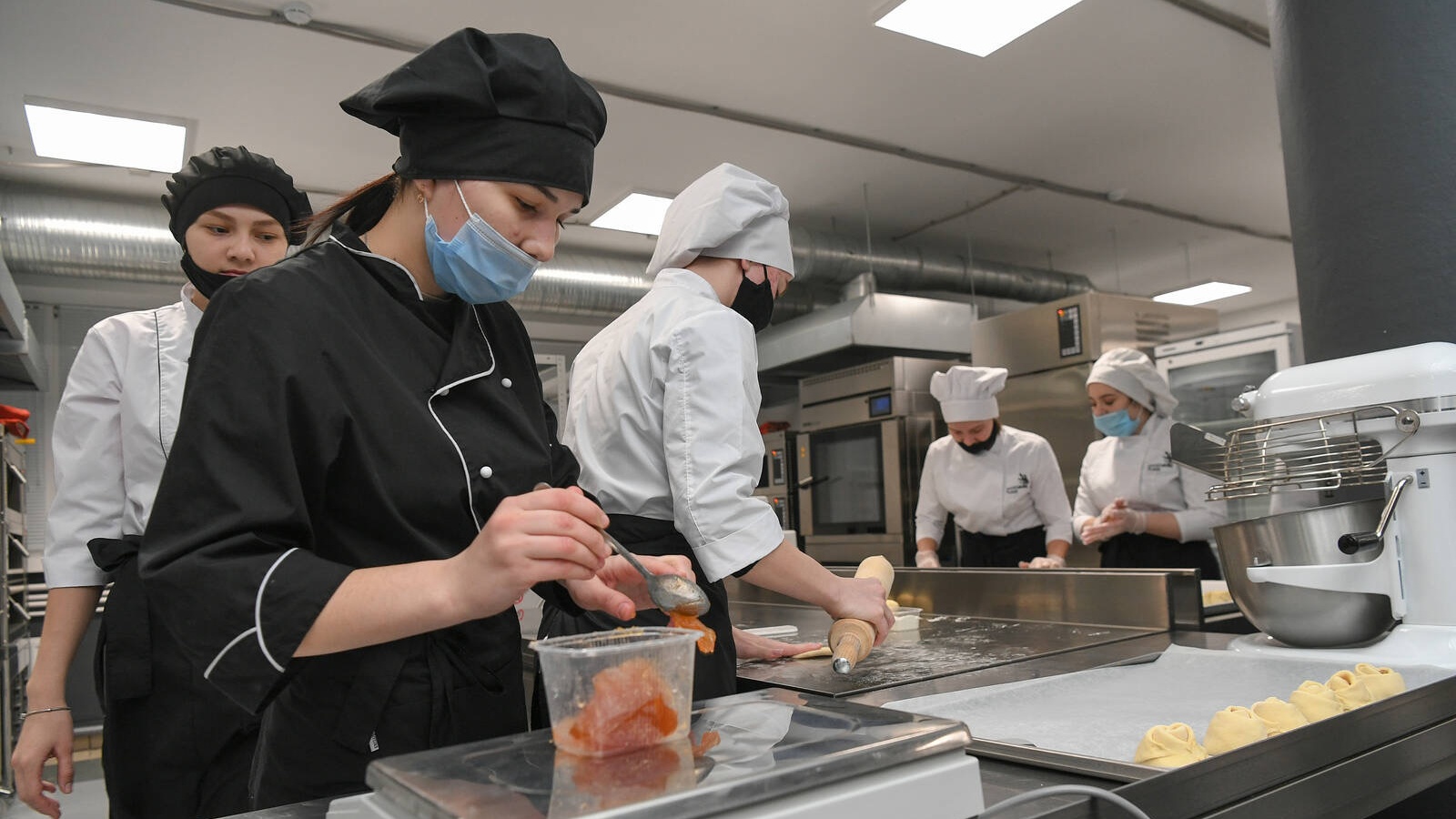 Рядом - цех хлебопечения, где проходят практику будущие пекари, кондитеры и повара, весьма востребованные в любом отеле. Оборудование здесь самое современное. Кстати, в своё время этот цех был задуман и создан в ККИ для того, чтобы готовить студентов для участия в конкурсе профессионального мастерства по стандартам WorldSkills. Теперь впору самим проводить соревнования самого высокого уровня, что и делается. Они пройдут в цехе хлебопечения ККИ в нынешнем октябре.