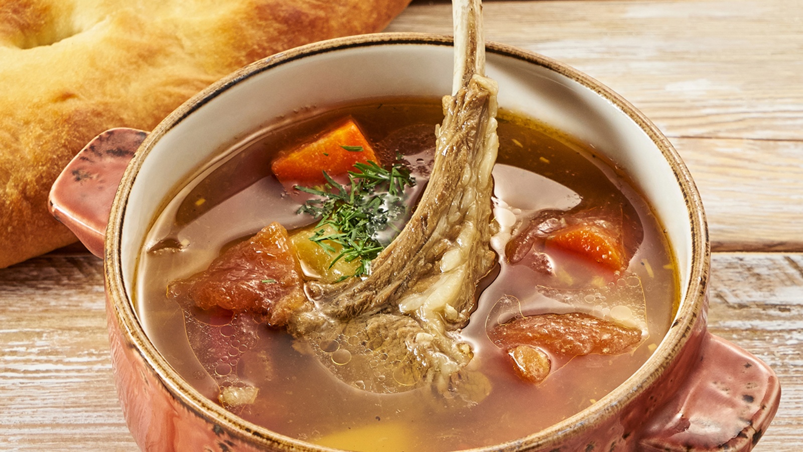 Ингредиентлары: 200 г он, 1 йомырка, 1 аш кашыгы сөт, 0,5 бал кашыгы шикәр комы, 1 бал кашыгы каймак, 0,5 г сода, 0,5 г тоз, 100 г тавык, сыер яки күркә ите яисә 60 г сарык ите, 20 г башлы суган, 3 г петрушка яки укроп, 10 г лимон, 300 мл шулпа.