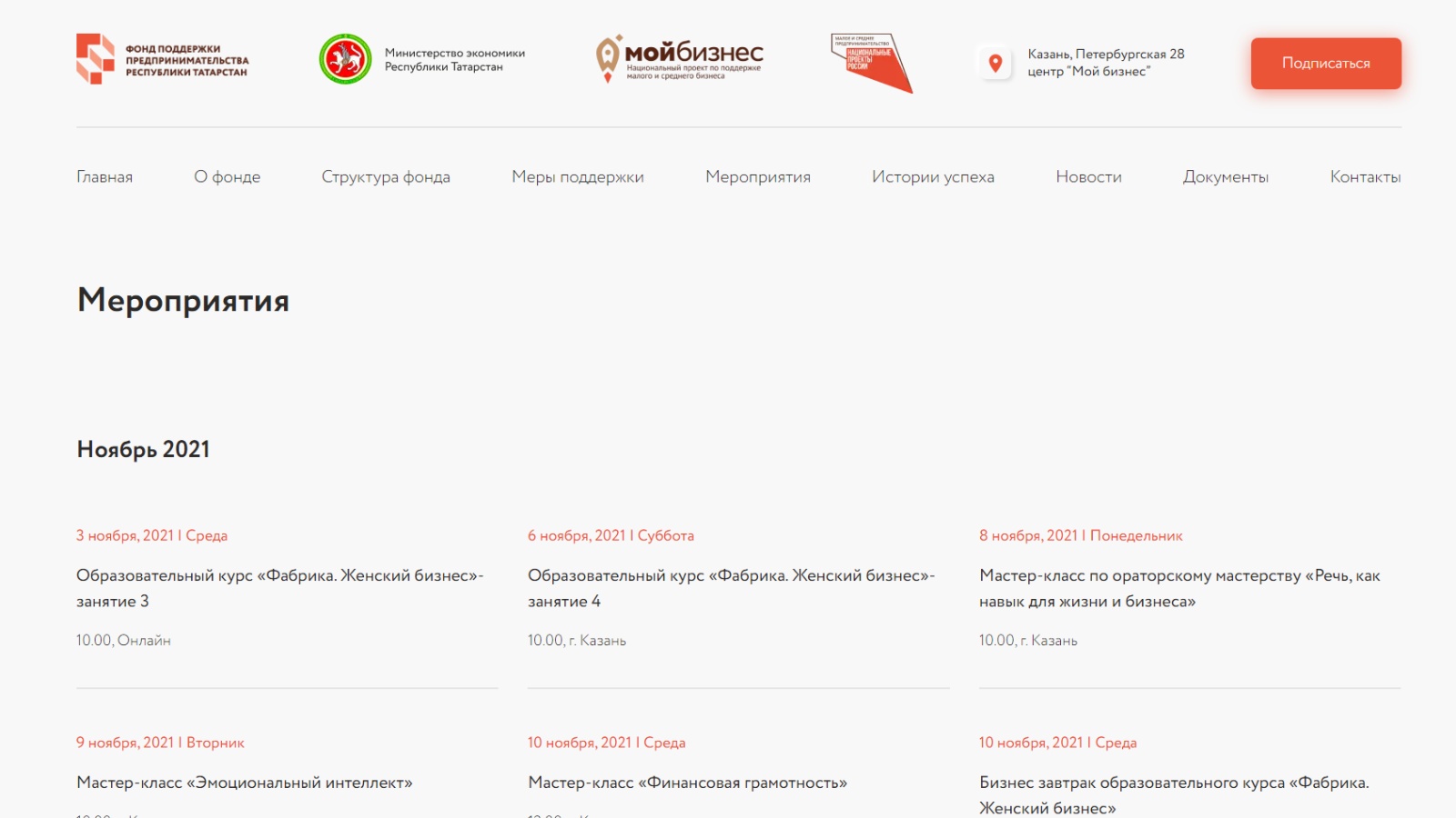 Ознакомиться с актуальным календарем мероприятий и направить заявку на участие можно на сайте Фонда поддержки предпринимательства РТ. Мероприятия проходят в оффлайн- и онлайн-форматах в разных городах республики и позволяют предпринимателям подробно изучить этапы вывода бизнеса на новый уровень, ознакомиться с лучшими практиками и кейсами, найти партнеров, адаптировать к современным условиям, освоить новые рынки.