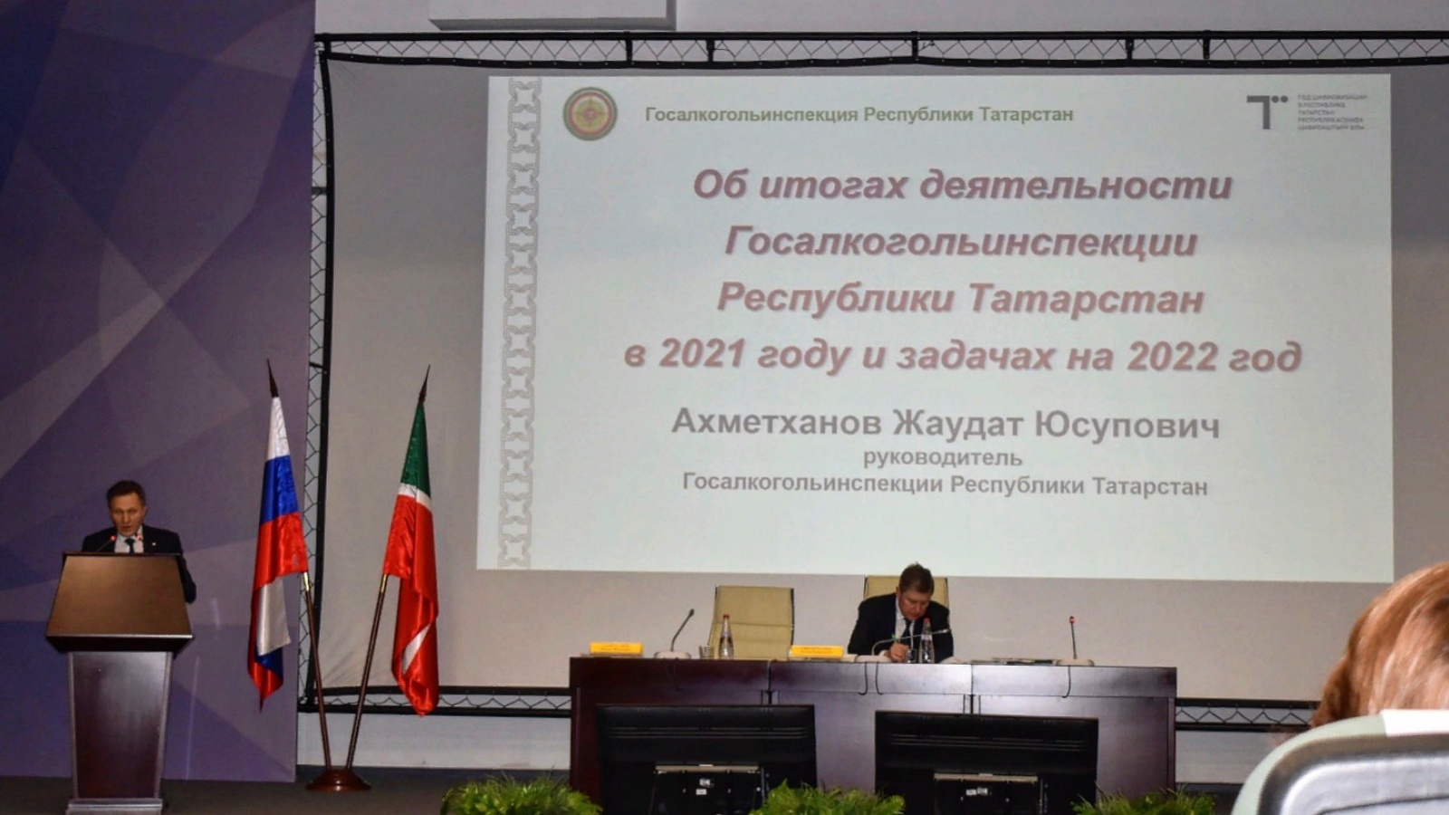 В Госалкогольинспекции Республики Татарстан состоялось заседание по итогам деятельности за 2021 год и задачах на 2022 год. В работе совещания приняли участие первый заместитель Премьер-министра Республики Татарстан Рустам Нигматуллин, представители Управления экономической безопасности и противодействия коррупции МВД по Республике Татарстан, руководители Исполкомов муниципальных образований, других Министерств и Ведомств Республики Татарстан, представители территориальных органов, коллектив Госалкогольинспекции Республики Татарстан. От правления Татпотребсоюза участие принял начальник управления торговли Ильдус Хатыпов.