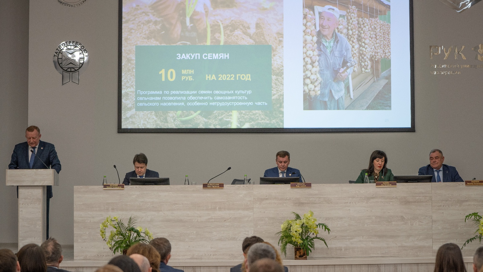 С основным докладом «Об итогах деятельности организации потребительской кооперации за отчетный период и задачах на перспективу» выступил председатель правления Татпотребсоюза Рашат Шаймарданов. 2021 год – отметил он, был знаменателен юбилейными датами - 190-летием потребительской кооперации России и 105-летием со дня организации Союза потребительских обществ Республики Татарстан. Этим датам предшествовали созидательный труд кооператоров на благо сельских жителей и всего населения республики.