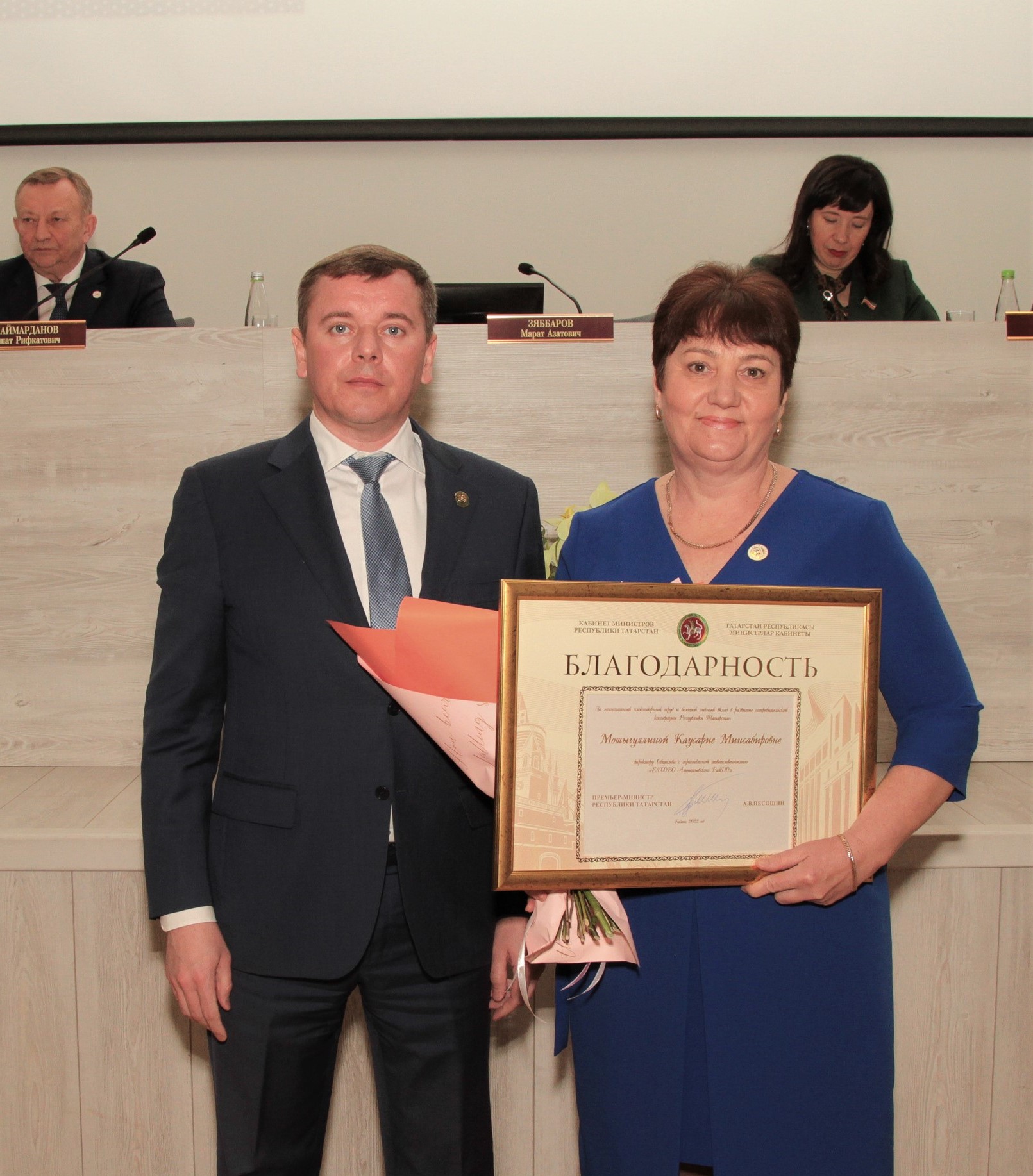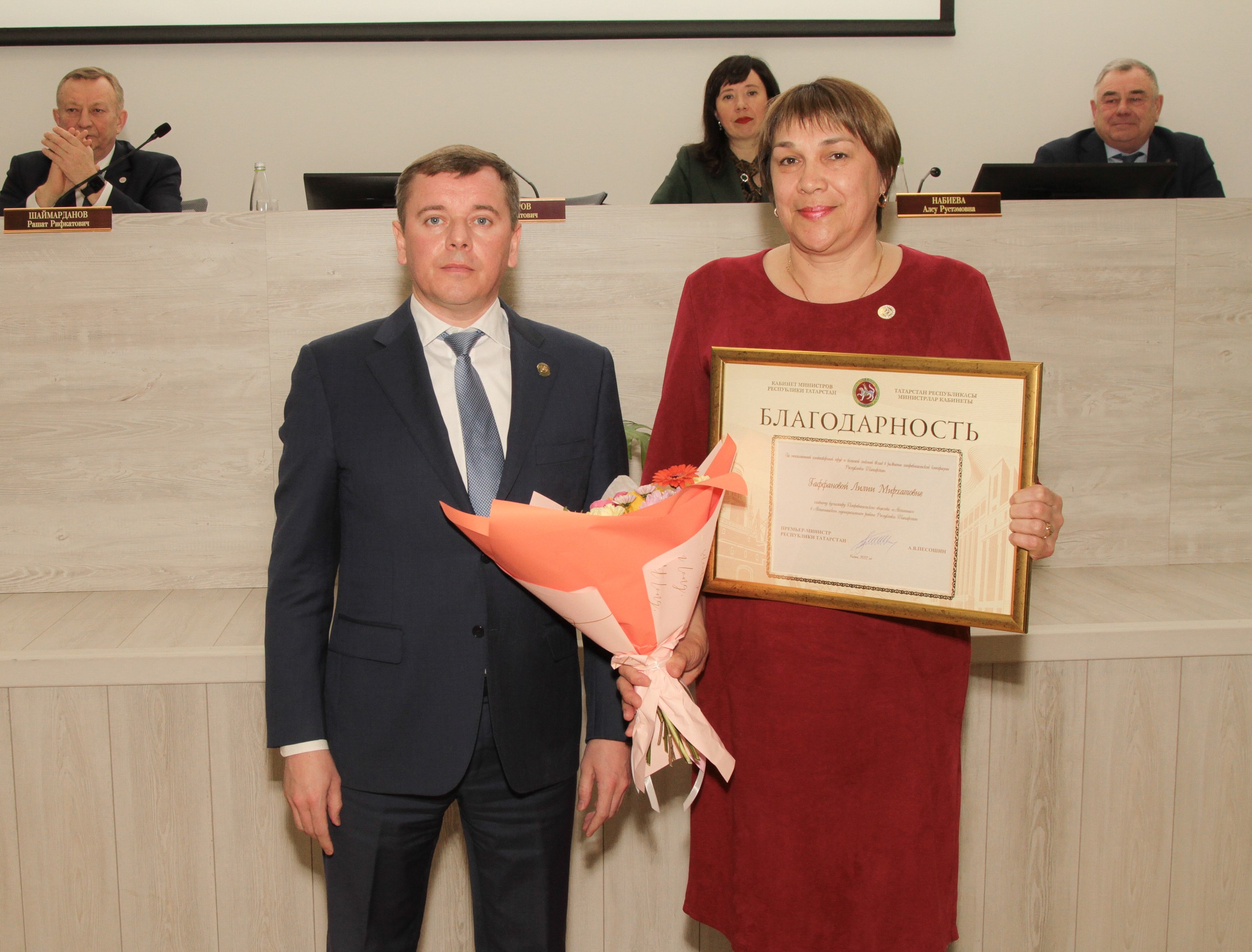 Күпьеллык намуслы хезмәте һәм республикада кулланучылар кооперациясе системасын үстерүгә зур өлеш кертүләре өчен Татарстан Республикасы Министрлар Кабинетының Рәхмәте белдерелде: