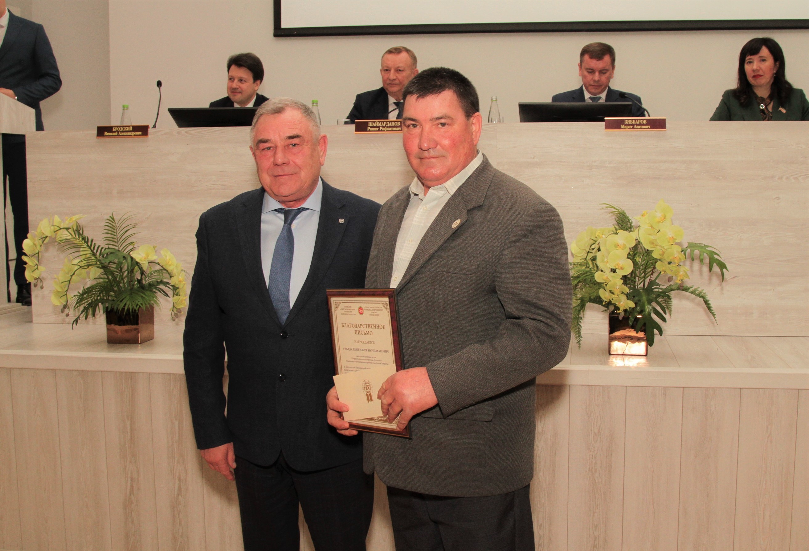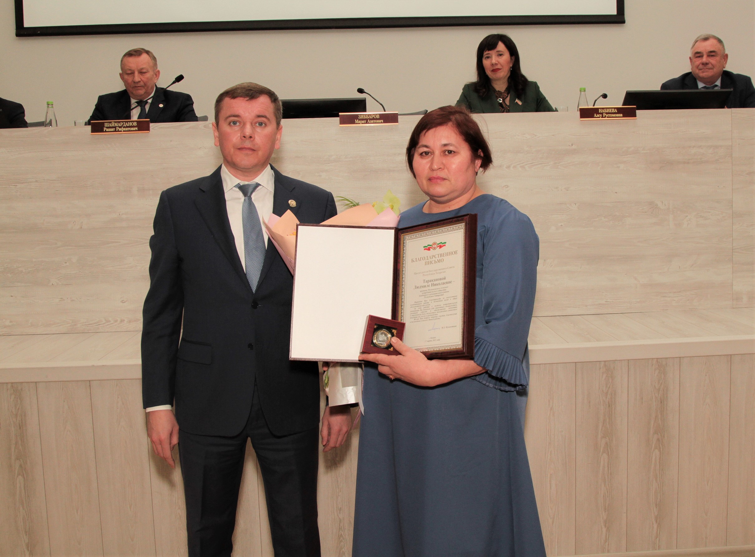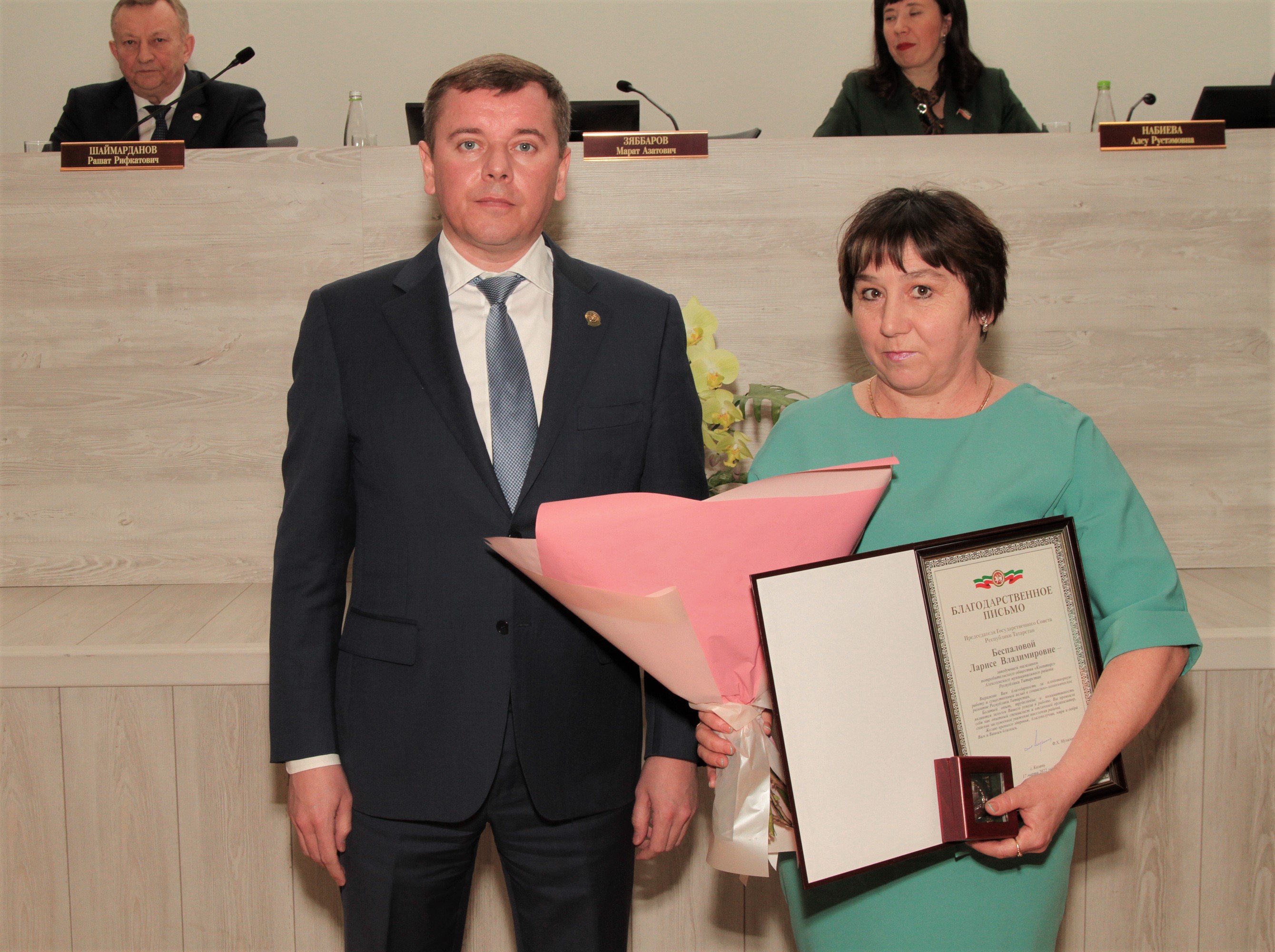 Распоряжением Председателя Государственнго Совета Республики Татарстан “За существенный вклад в социально-экономическое развитие республики” Благодарственным письмом Председателя Государственного Совета поощрены: