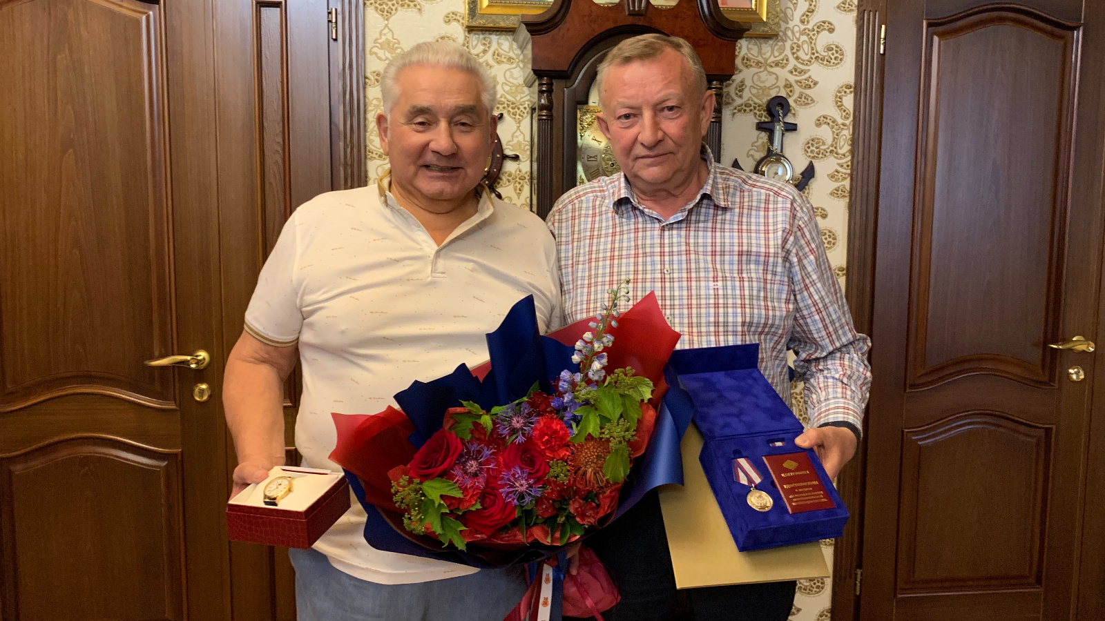 Председатель правления Татпотребсоюза Рашат Шаймарданов поздравил Роберта Хайруллина с 75-летним юбилеем.