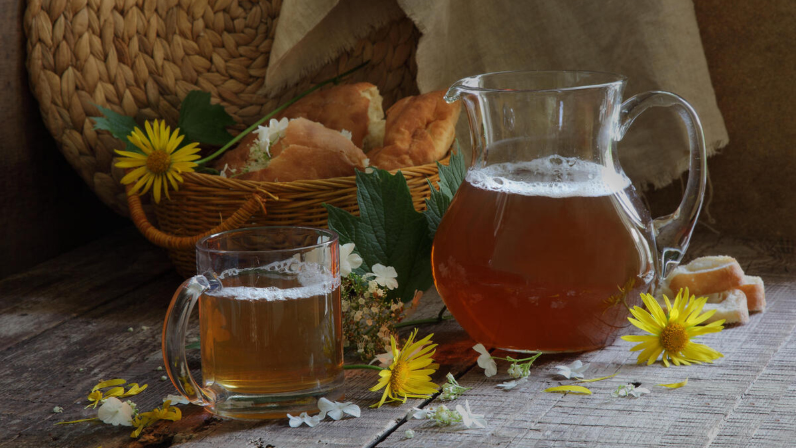Незатейливый и быстрый в приготовлении напиток придется по вкусу и взрослым, и детям. С приятным ароматом и легкой кислинкой — такой квас отлично утоляет жажду. Причем для него даже не потребуются хлебные сухарики или корки. А яблочный сок можно брать хоть свежевыжатый, хоть покупной.