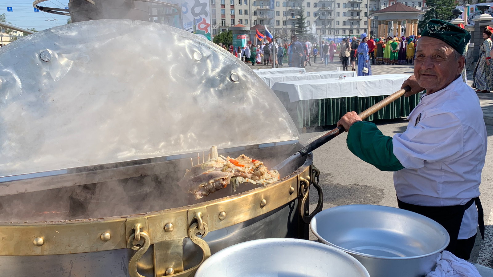 Самым популярным во время проведения татарстанскими кооператорами праздничных мероприятий становится приготовление данного супа в тысячелитровом «татарском самоваре» сразу на 4000 порций!
