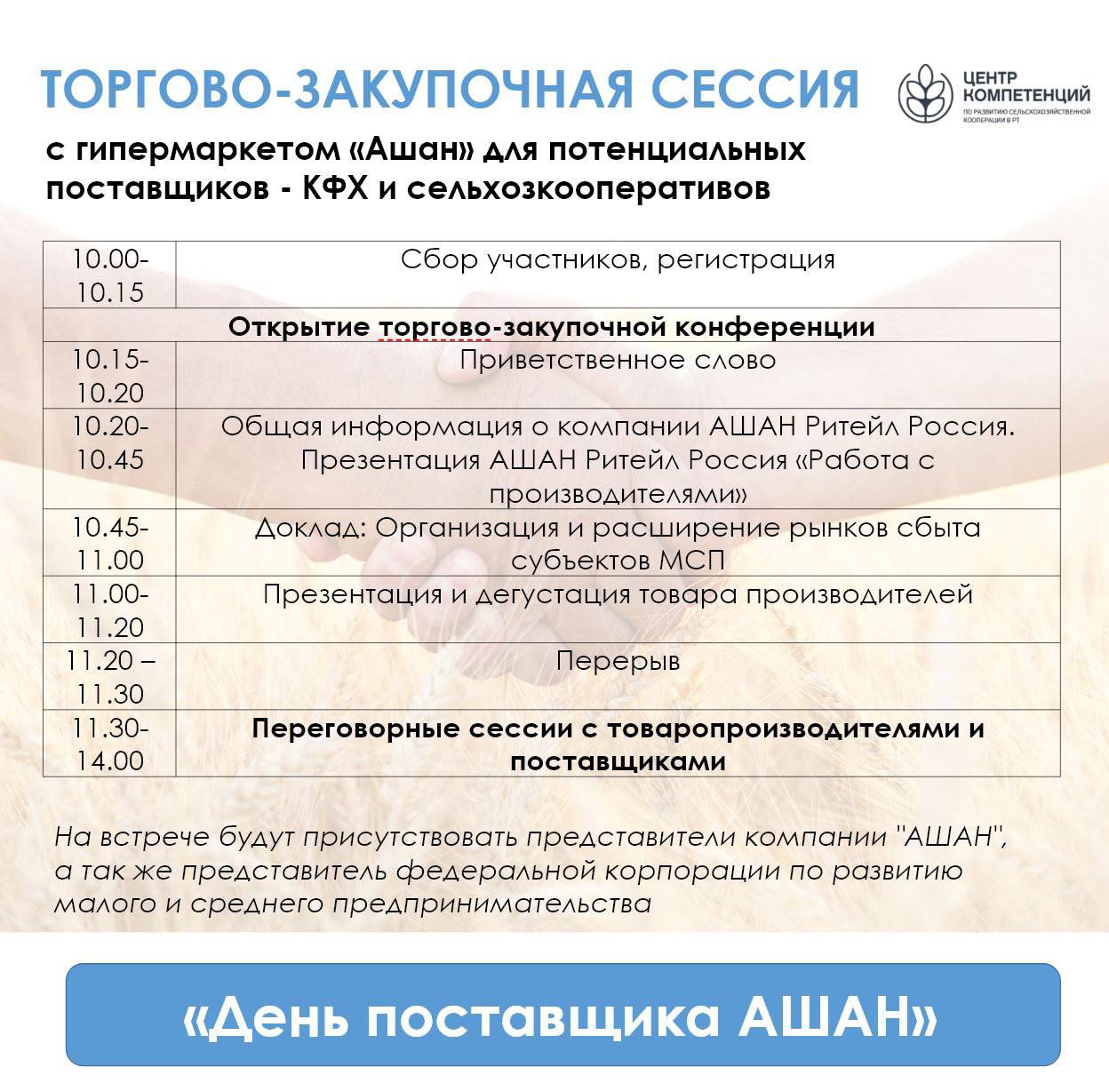 Гипермаркет «Ашан» проводит торгово-закупочную сессию с крестьянскими (фермерскими) хозяйствами и сельскохозяйственными потребительскими кооперативами.