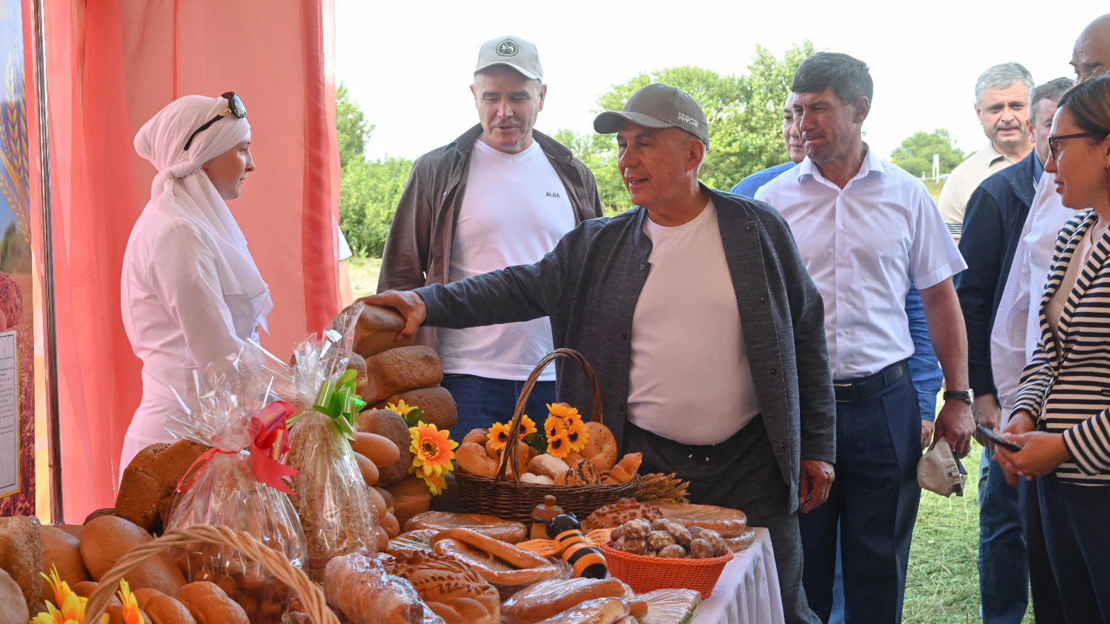 Далее Рустам Минниханов осмотрел выставку местных производителей, где также была представлена продукция собственного производства кооператоров Алексеевского райпо.