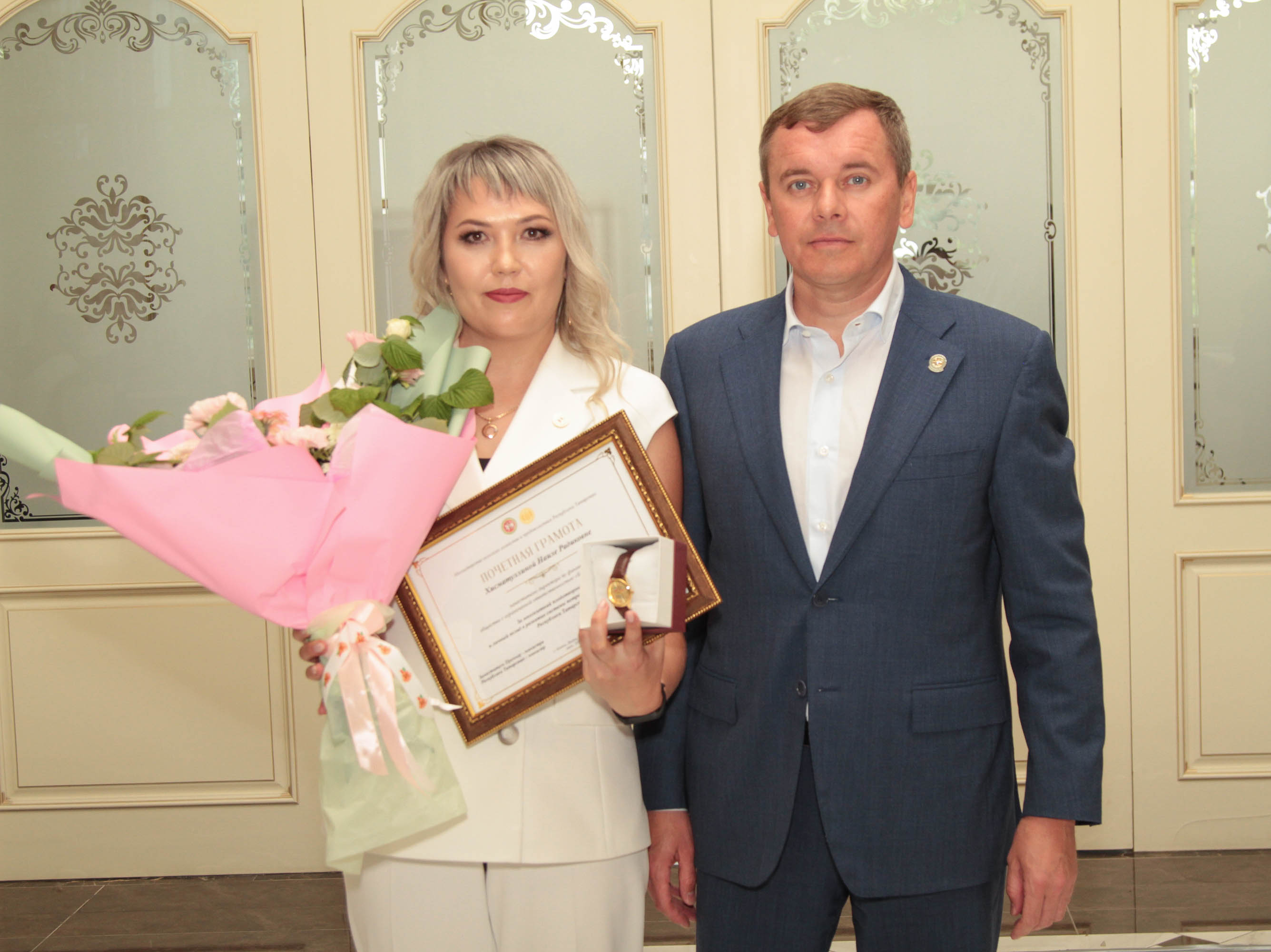 УКАЗОМ РАИСА РЕСПУБЛИКИ ТАТАРСТАН «За вклад в развитие системы потребительской кооперации и плодотворную работу» почетное звание «Заслуженный работник сферы