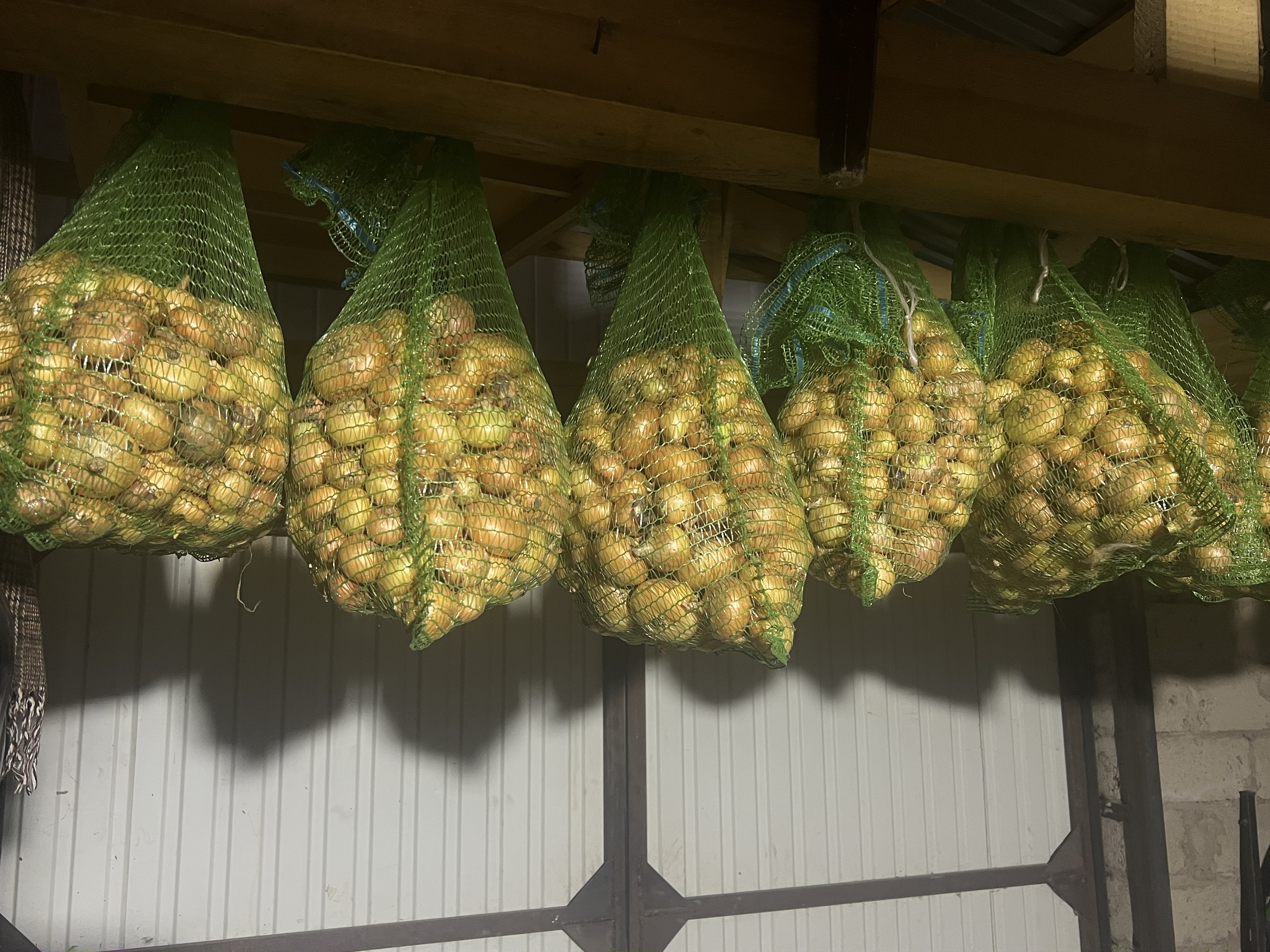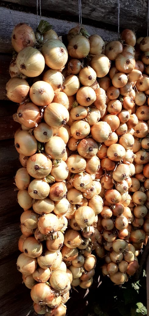 Напомним, что лучше всего лук хранится так называемым деревенским способом. Для этого не нужно обрывать или отрезать высохшие перья, а заплести урожай в косу, после чего подвесить на стену в сухом помещении.