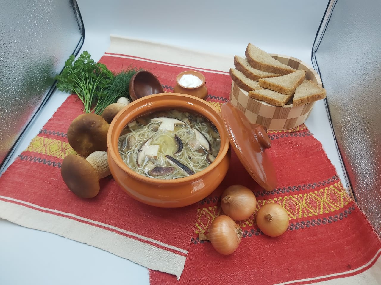 Были приготовлены - суп грибной с домашней лапшой, «топлекэй», томленый в печи бэлиш с калиной. Также были сделаны профессиональные фотографии для иллюстрации представленных блюд Агрызского района.