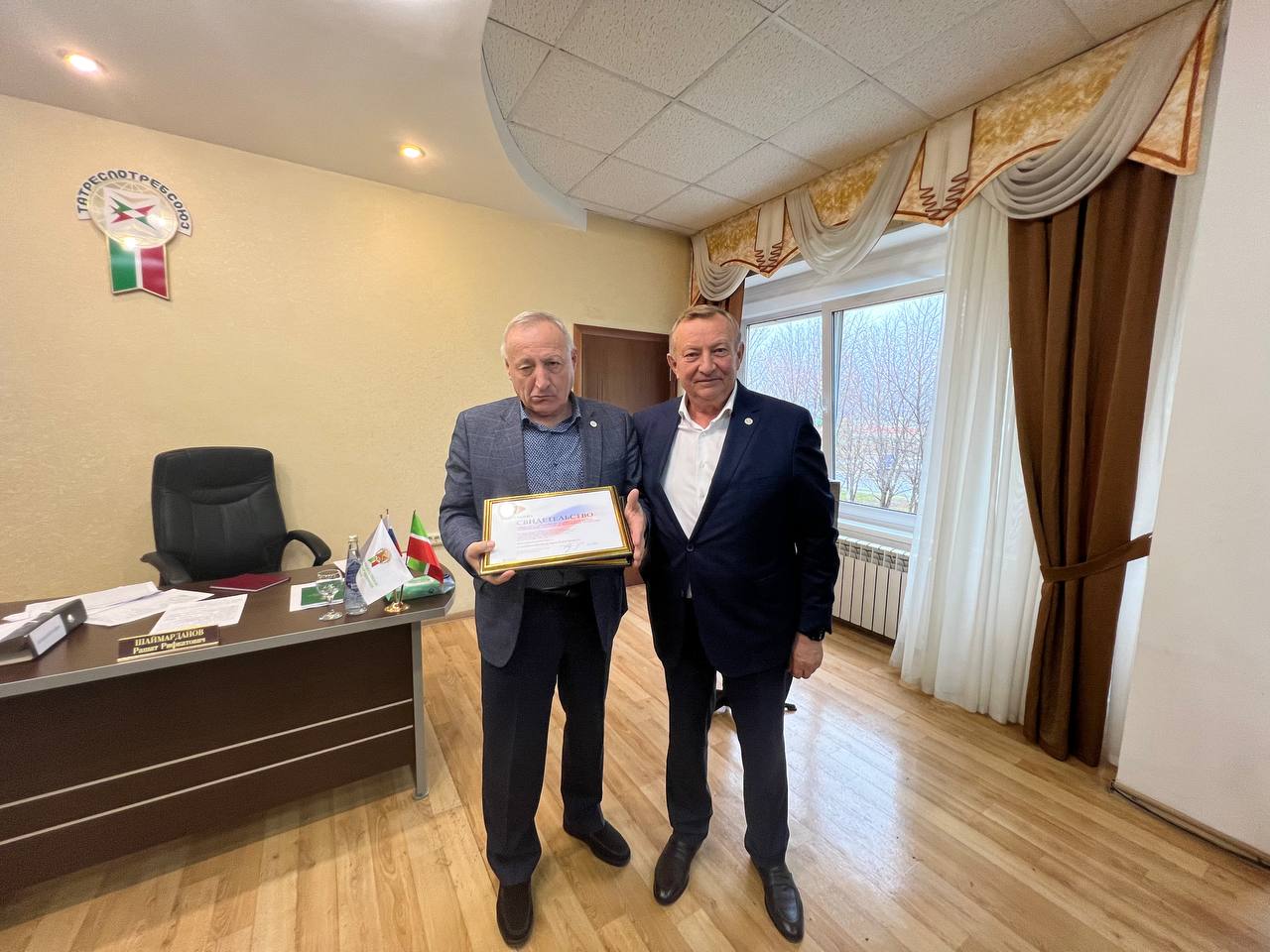 Председатель правления Татпотребсоюза Рашат Шаймарданов на республиканском семинаре-совещании вручил награды от Центросоюза России.