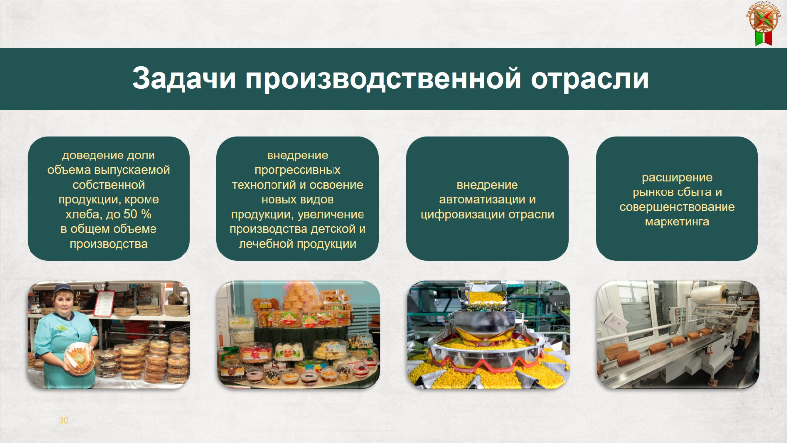За отчетный период обеспечили наивысший объем выпускаемой продукции Бавлинский хлебзавод – 148 млн рублей, Сармановский – 138 и Бугульминский хлебозавод – 115 млн рублей. Низкие объемы предприятий: Азнакаевский пищекомбинат – 9,4 млн рублей, Аксубаевский – 11,2 млн рублей, Сабинский – 7,1 млн рублей.