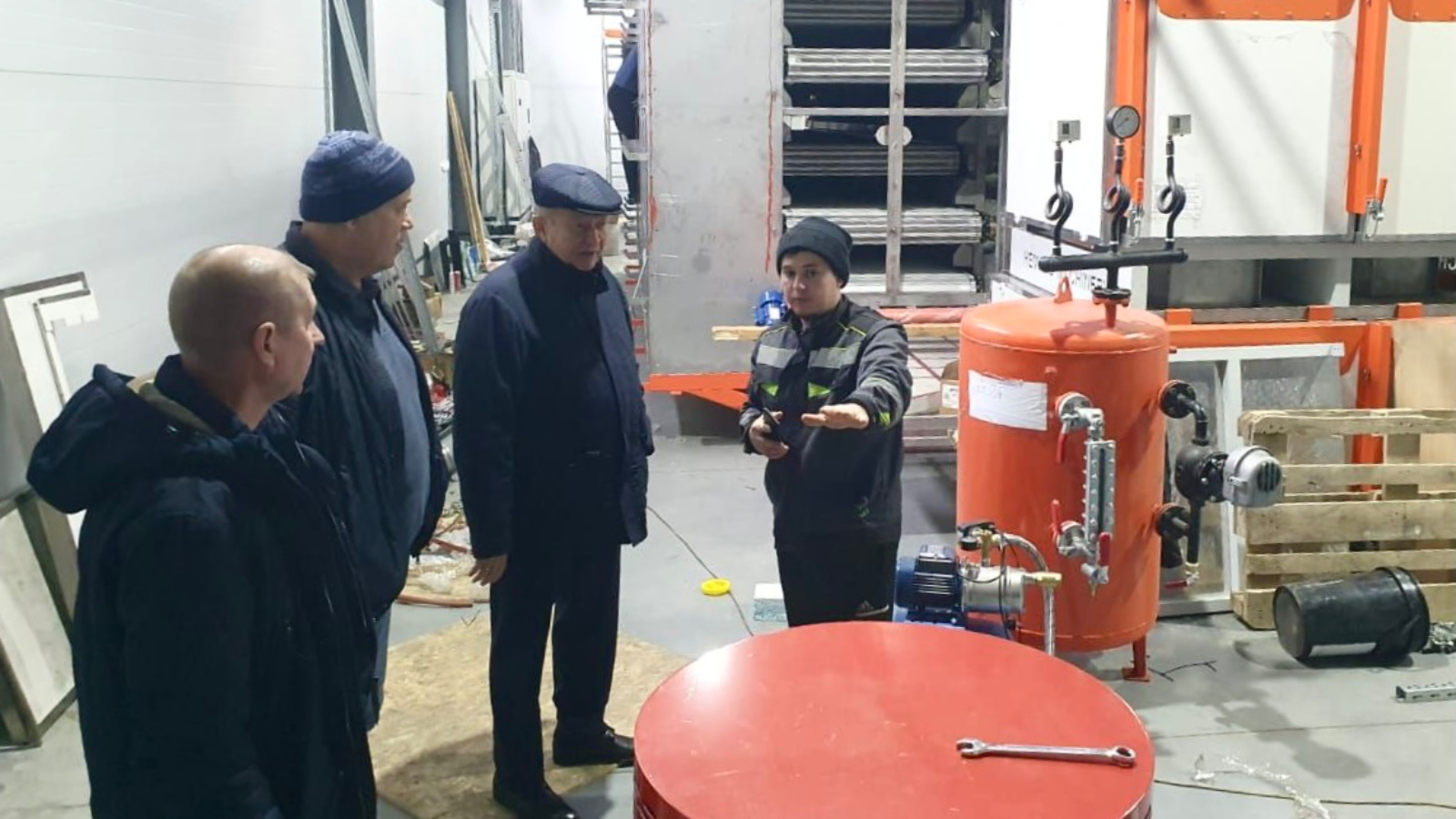 Директор макаронной фабрики Риналь Маликов информировал о текущем состоянии сборки оборудования и каждом этапе выполненных и предстоящих работ. Ознакомил с процессом технологической сборки линии сушки макарон, подачи горячей воды, присоединении котлов к линии и т. д.