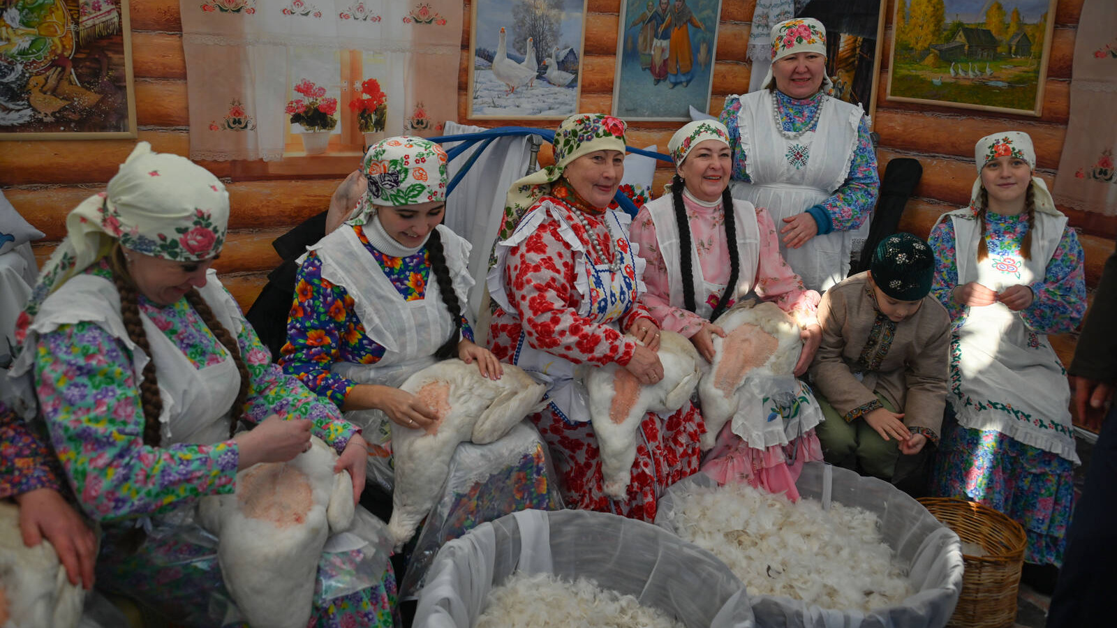 Ярдәмгә чакырылган яшь кыз туганнар һәм күршеләр иртәдән алып көн уртасына кадәр кызык сүзләр сөйләшеп, җырлар җырлап, каз-үрдәк йолкыйлар, эчләрен чистарталар.