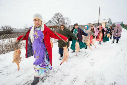 Киләсе елга да казлар күп булсын өчен, алар чишмәгә казлар шикелле каңгылдашып баралар, ә казлар йөри торган сукмакка каз каурыйларын сибәләр.