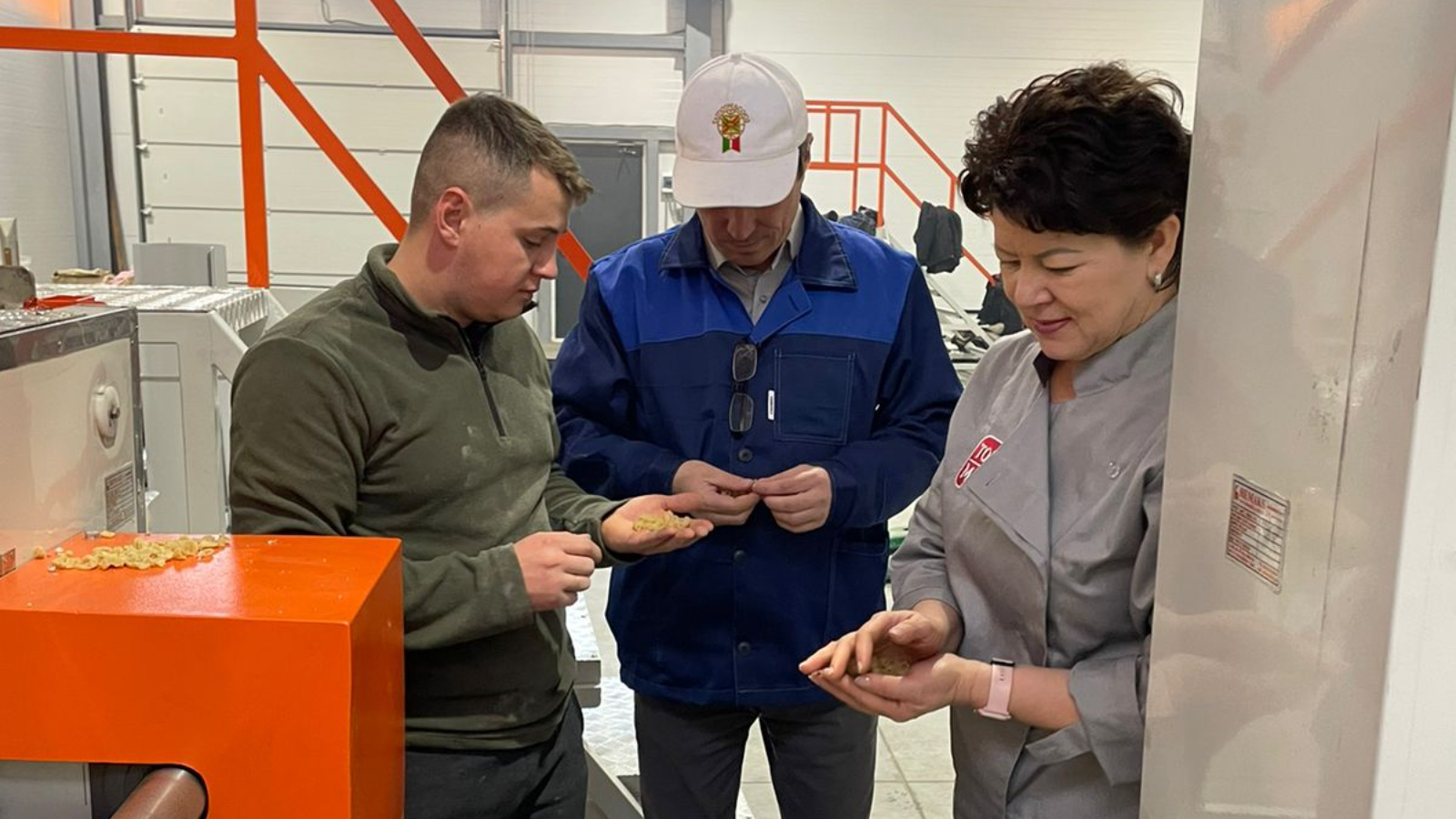 Сегодня на макаронной фабрике в испытательном режиме запущена линия по производству макаронных изделий. По технологии процесс производства начинается с прохождения муки через мукопросеивательную машину, после чего замешивается с водой до получения теста с влажностью около 30 %. Затем, под давлением, тесто проходит через матрицы и подвергается быстрой тепловой обработке, которая приводит к подсушиванию изделий до уровня влажности в 13 %. Регулярный контроль данных показателей крайне необходим, поскольку некорректный уровень влажности может привести к микробиологическому обсеменению.