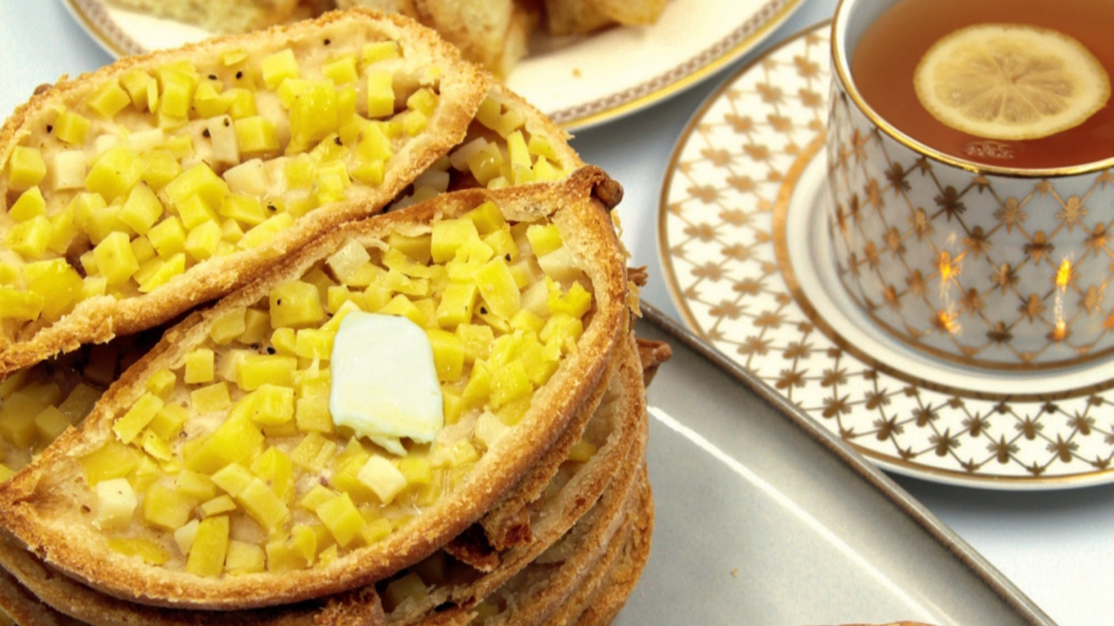 Баскан камырны 70 г кисәкләргә бүлеп, диаметры 12 см булган җәймәләр җәяләр, бу җәймәләрнең уртасына 50 г эчлек салалар һәм кырыйларын уртага җыеп, буйдан-буйга бөрмәләп ябыштыралар. 200 °С кадәр җылытылган духовкада, алтынсу төскә кергәнче, 30 минут чамасы пешереп алалар.