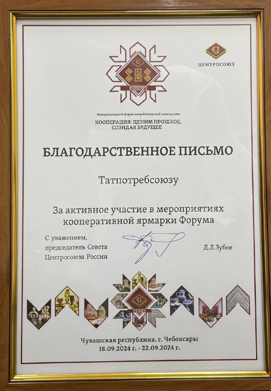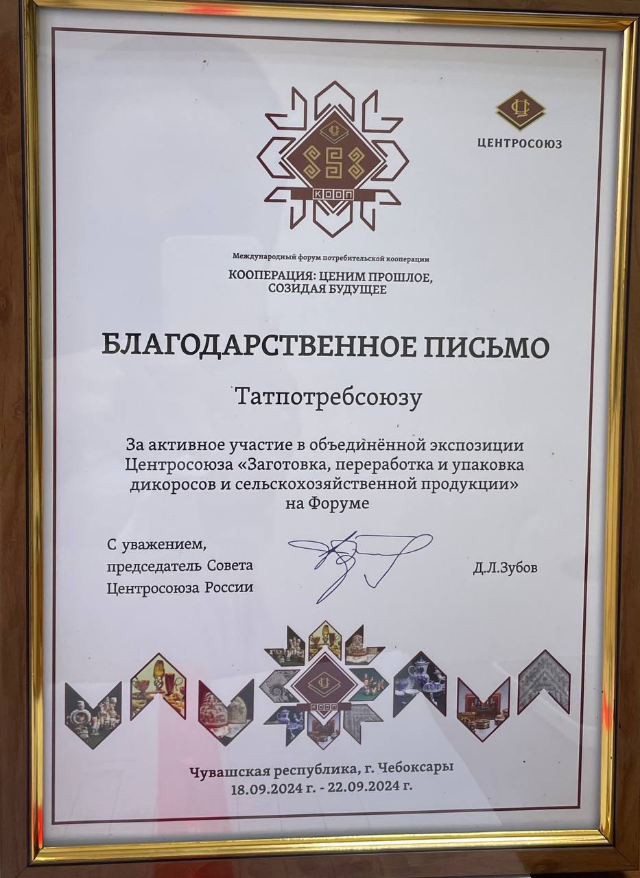 Татпотребсоюз награжден благодарственными письмами за активное участие в объединенной экспозиции Центросоюза, которая была организована в рамках форума "Заготовка, переработка и упаковка дикоросов и сельскохозяйственной продукции". Это мероприятие собрало множество участников и привлекло внимание как профессионалов отрасли, так и широкой публики, продемонстрировав значимость кооперативных подходов в сфере сельского хозяйства и переработки.