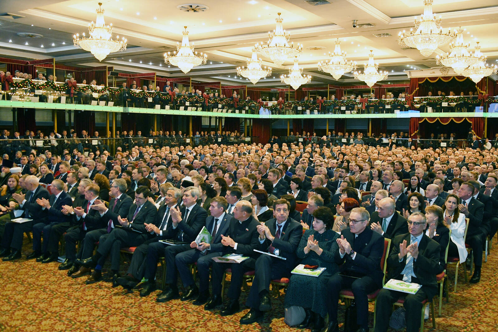 В Казани прошел XlX съезд Ассоциации «Совет муниципальных образований Татарстана» под председательством Раиса Республики Татарстан Рустама Минниханова. На встрече присутствовали также председатель Госсовета Фарид Мухаметшин и премьер-министр Алексей Песошин.