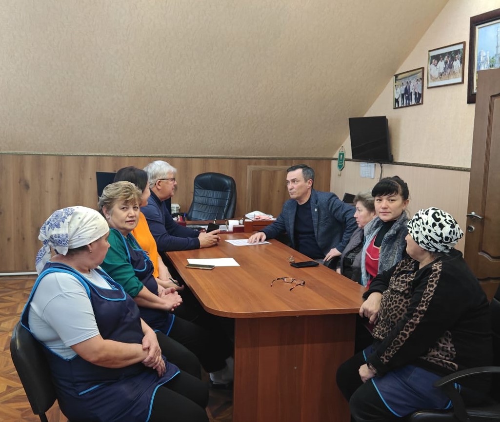 Совместно с председателем Совета Асхатом Низамовым обсуждена текущая ситуация в торговле и проведен осмотр ассортимента реализуемой продукции в магазинах.