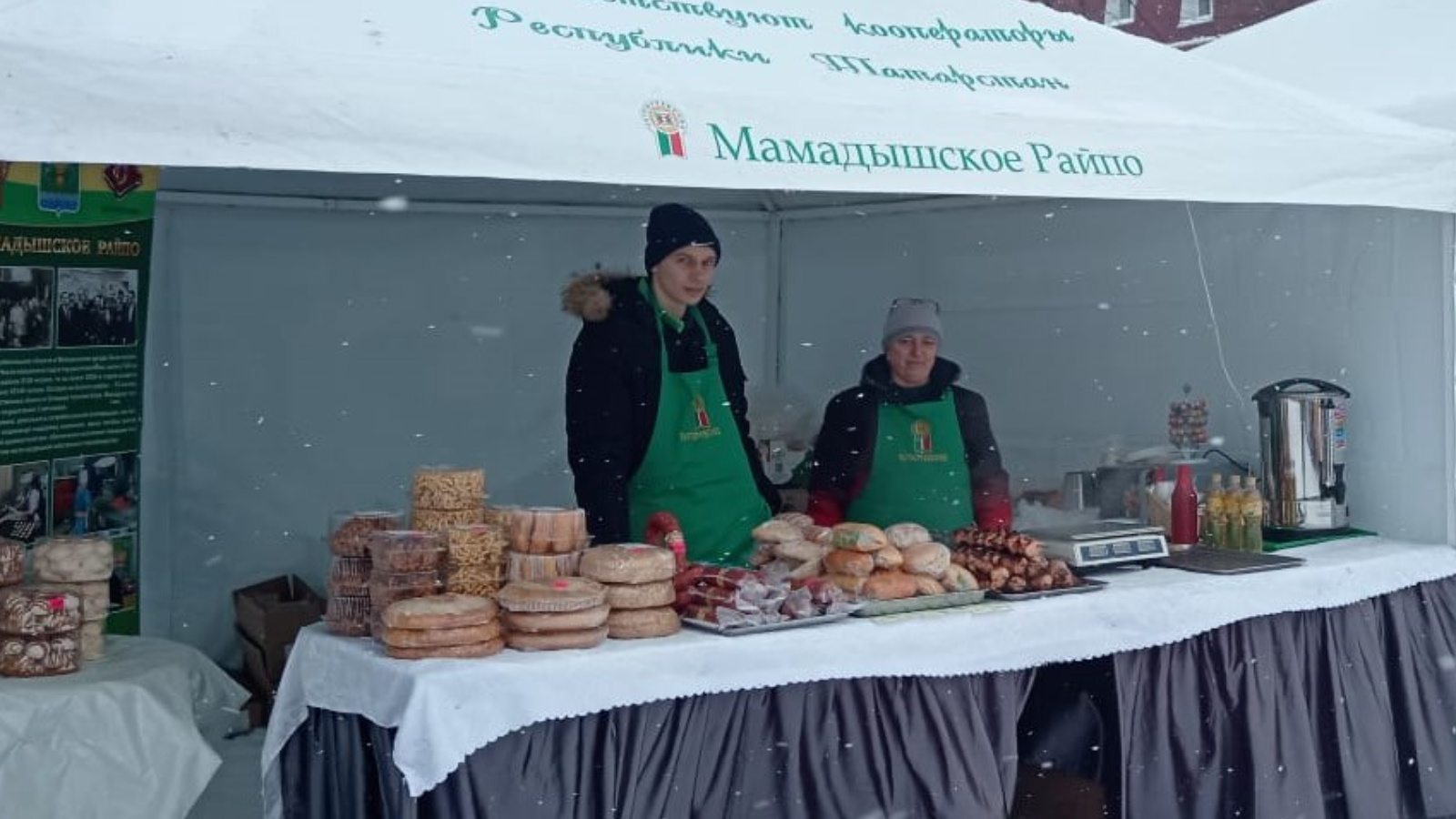 На праздник они вышли с их собственной райповской продукцией. Угостили народ всем, чем богаты, чем славятся мамадышские кооператоры: это чак-чак, хворост, эчпочмаки и другая выпечка, колбасы,знаменитый мамадышский лимонад, разные мясные закуски/